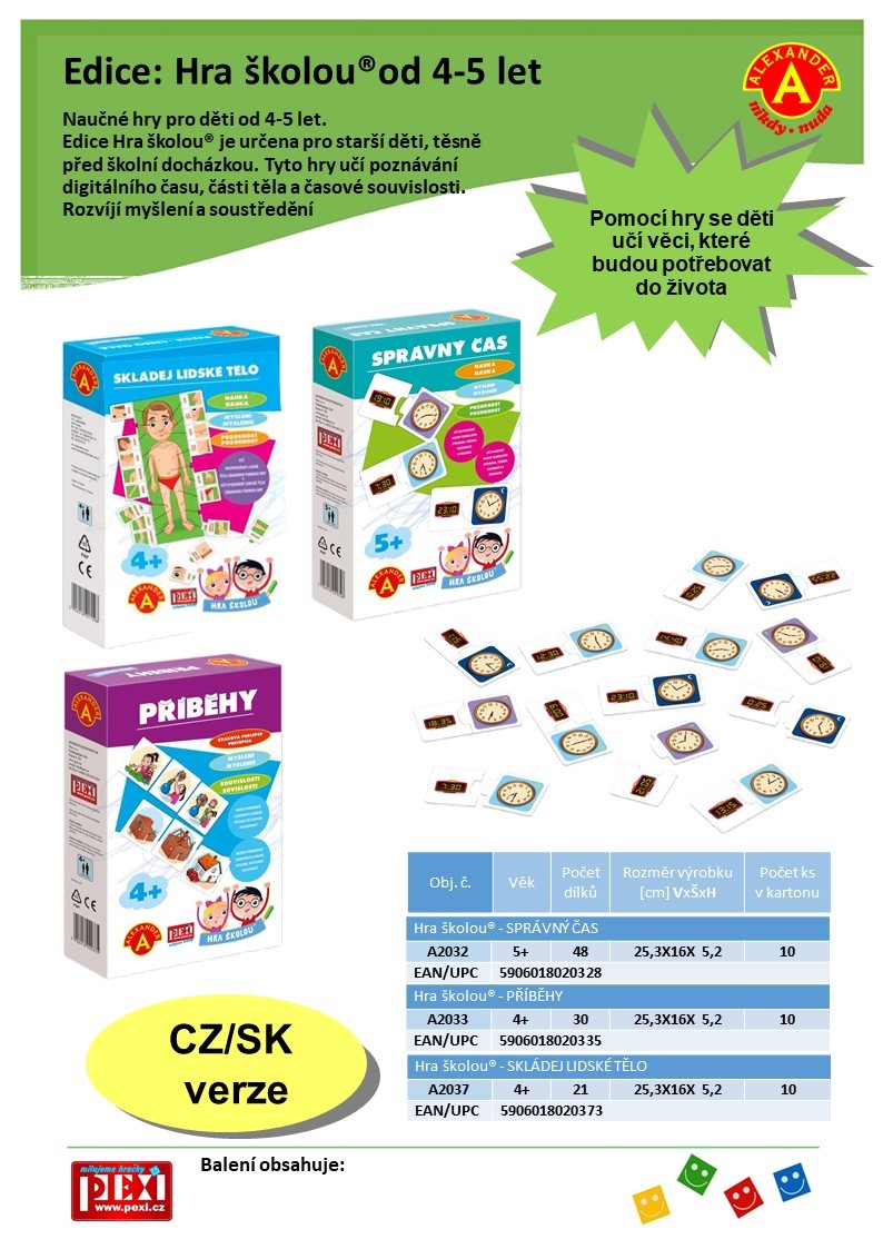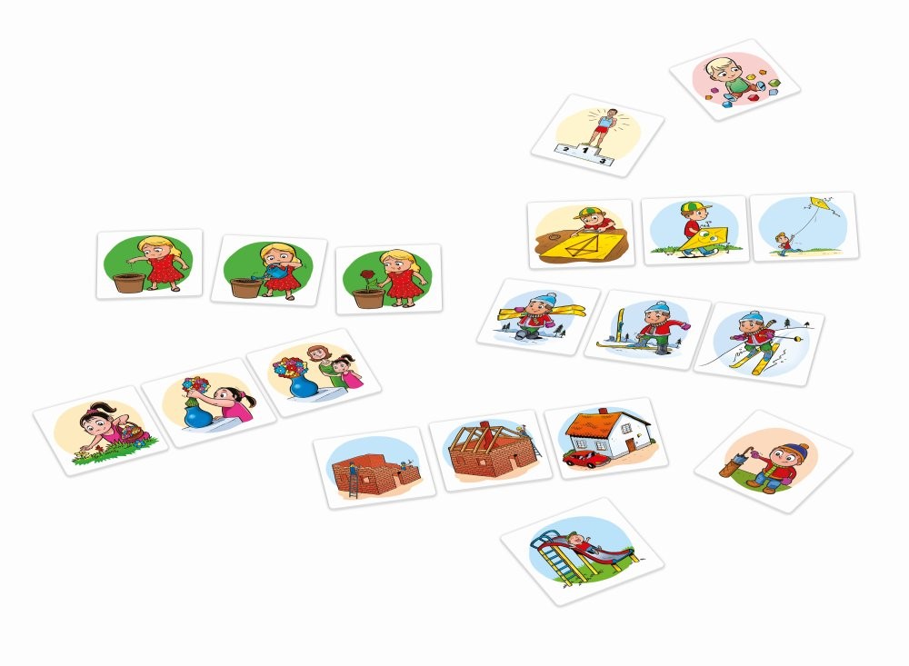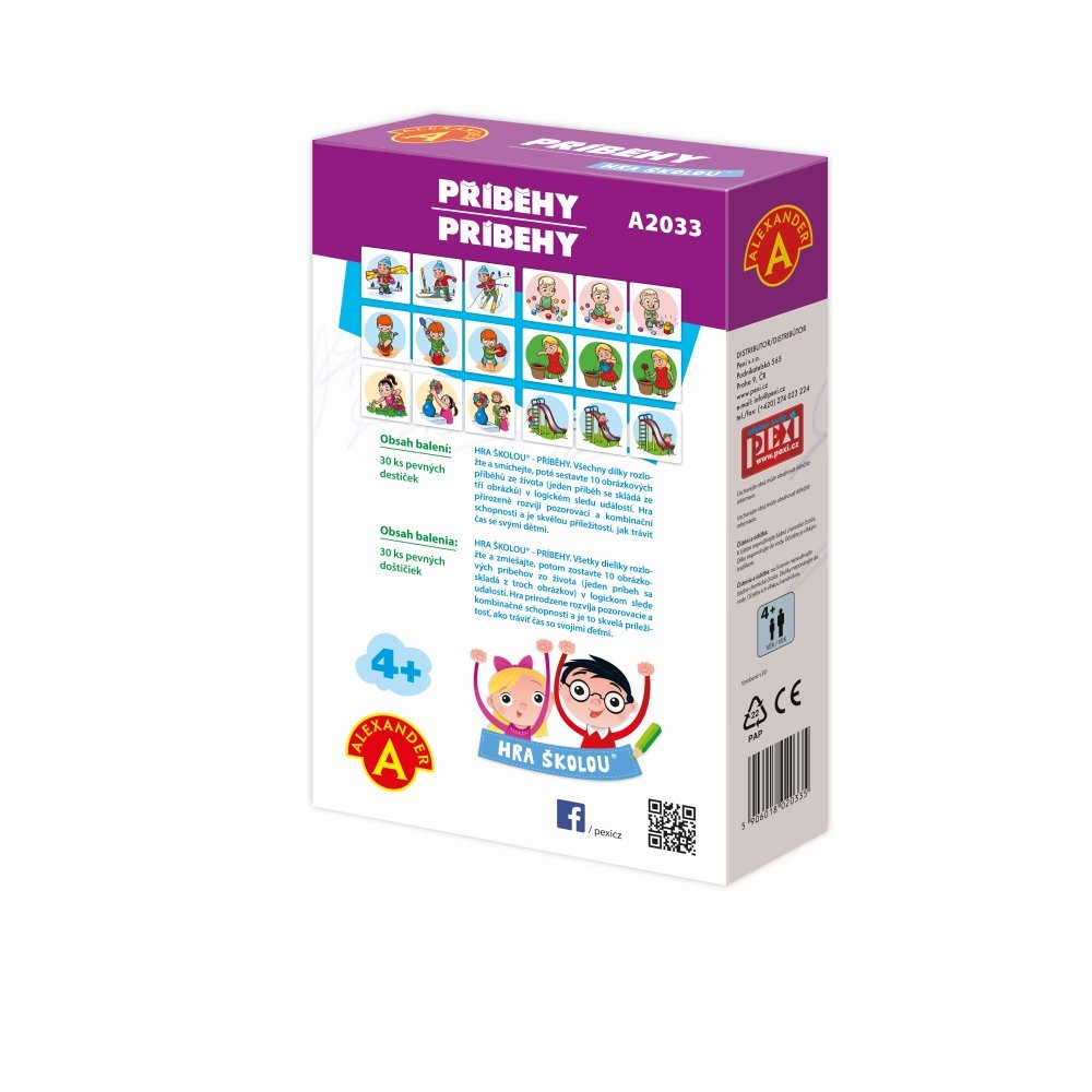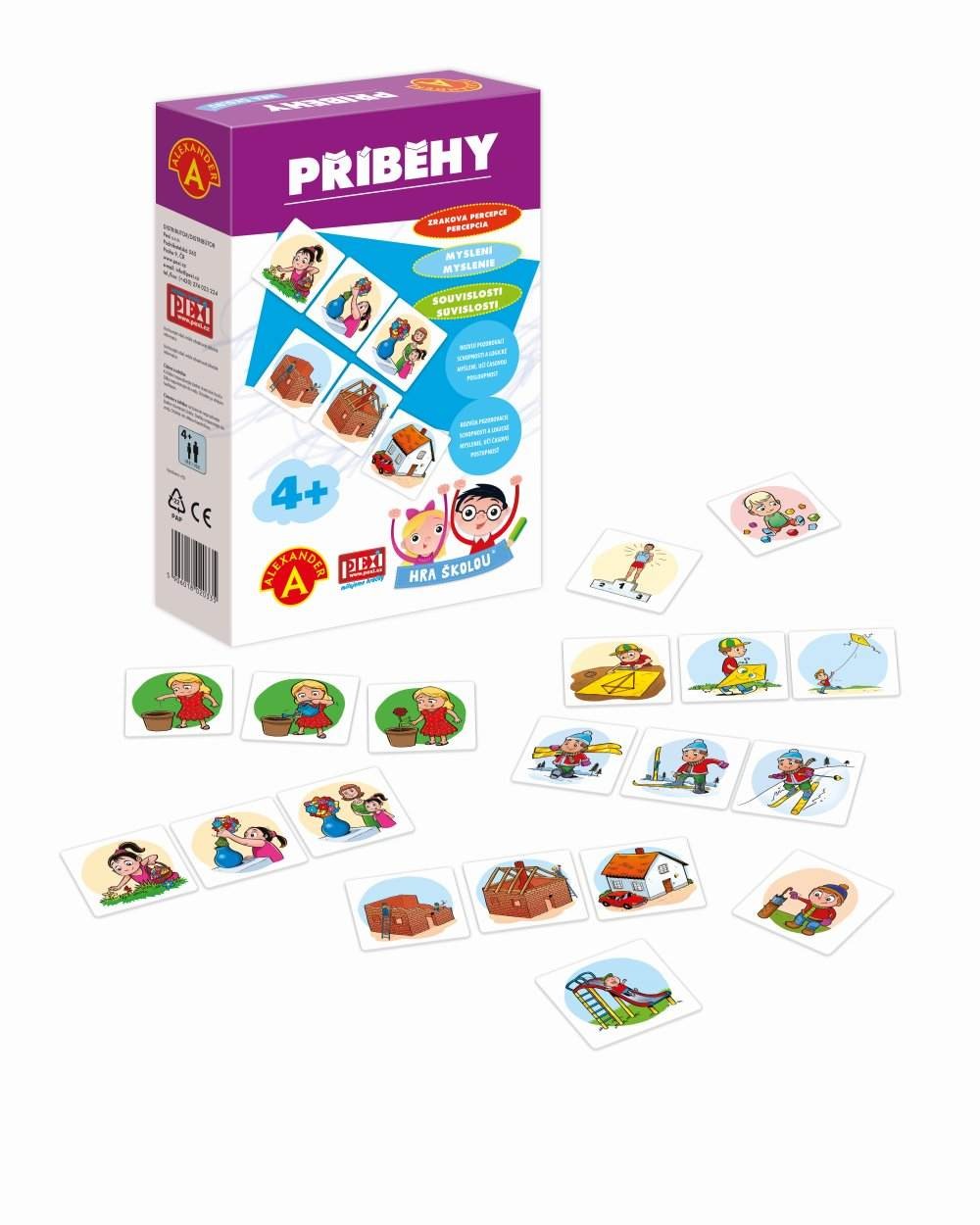 Hra je ze série naučných her pro malé objevile "HRA ŠKOLOU®", která byla oceněná jako "Hračka roku 2018". Naučné hraní pro malé zvědavce od 4 let, pomocí níž se děti učí poznat časové posloupnosti v příbězích, logicky uvažovat a zdokonalují schopnost mluvit a popisovat. Hra rozvíjí pozorovací schopnosti, trénuje postřeh a zdokonaluje řeč. Úkolem je složit destičky s příběhy, tak aby na sebe postupně navazovaly a vznikl celý logický příběh ve správné časové posloupnosti. Při skládání příběhů, si děti povídají s rodiči a popisují to, co vidí na obrázcích. To je vede k rozšiřování slovní zásoby a zlepšení vyjadřování a také, za pomoci rodičů ke zlepšení výslovnosti. Obsah balení: 30 kusů obrázkových destiček s obrázky (z pevného kartonu)český a slovenský návod s příběhy  Hlavní vlastnosti: pro děti od 4 do 6 letrozšiřování slovní zásobyzlepšení vyjadřování a také zlepšení výslovnosti