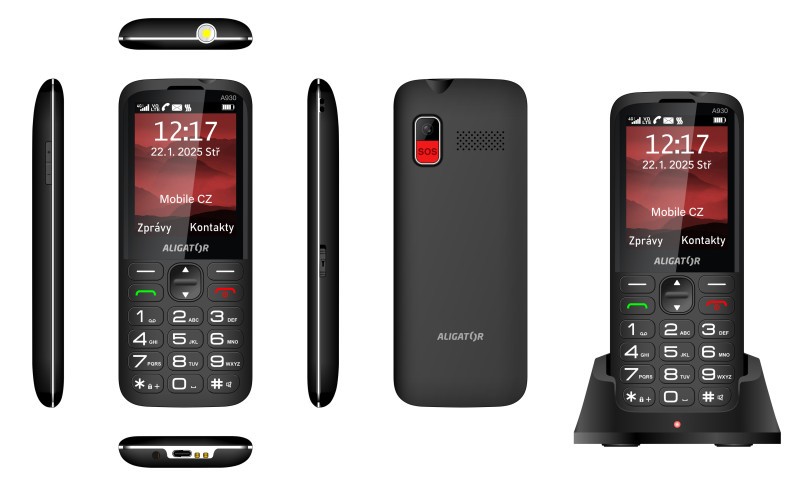 Tlačítkový mobilní telefon Aligator A930 GPS Senior, jak už jeho název napovídá, je určen zejména pro seniory. Je tomu plně uzpůsoben. Tento model disponuje velkým displejem, výškově orientovaným s úhlopříčkou 2,8" a rozlišením 320×240 px. Díky tomu je dobře čitelný. Jeho menu je velmi přehledné a proto s ovládáním nebudete mít žádný problém. Stejně tak si snadno poradíte s voláním i psaním zpráv. Během krátké chvíle se pro vás stane používání tohoto telefonu maximálně pohodlné a příjemné. Do paměti si budete moct uložit až 500 kontaktů a 100 SMS.
