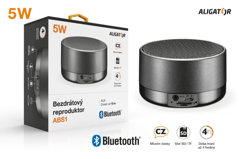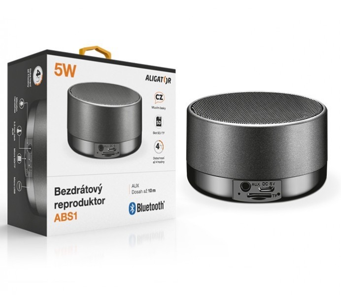 Bluetooth kovový reproduktor ALIGATOR ABS1, micro SD, černá