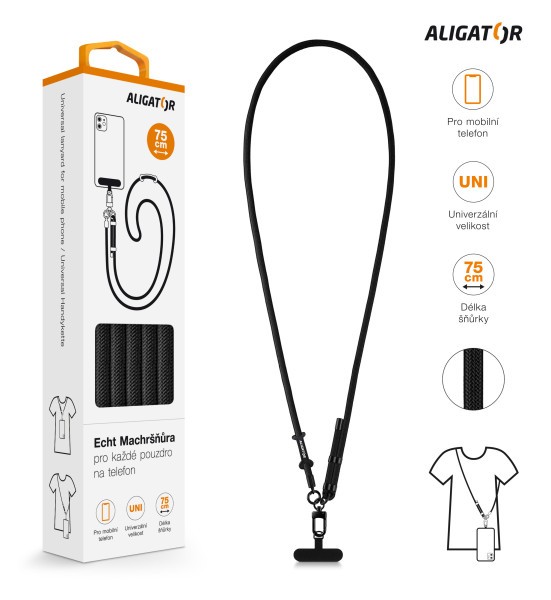 Aligator Echt Machršňůra, univerzální šňůrka pro mobilní telefon, černá