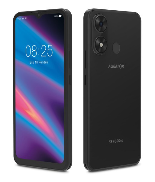 Aligator S6700 Duo je stylový a odolný smartphone s velkým 6,6" IPS displejem (HD+ 1600×720 px), který nabízí skvělou čitelnost i na přímém slunci a rychlou reakci dotyku díky integrované dotykové vrstvě. Tenké tělo (9,6 mm) o hmotnosti 189 g se snadno drží v ruce a díky moderním barevným variantám (modrá nebo černá) působí elegantně a současně praktičtěji.