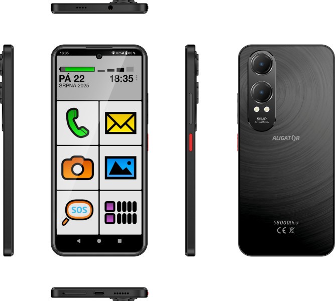 Velká baterie s kapacitou 5 000 mAh zajistí dlouhou výdrž na jedno nabití, takže telefon nemusí být nabíjen každý den. Aligator S8000 Senior nabízí také duální SIM, Bluetooth, Wi-Fi, FM rádio, fotoaparát i možnost připojení sluchátek přes 3,5mm jack. Díky kombinaci jednoduchosti, spolehlivosti a uživatelsky přívětivého rozhraní představuje tento model ideální volbu pro seniory, kteří chtějí moderní, ale snadno ovladatelný chytrý telefon.