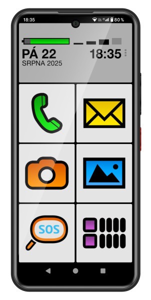 Telefon podporuje 4G sítě a běží na systému Android 15, který je přizpůsobený pro jednoduché používání. Uvnitř se nachází čtyřjádrový procesor, 4 GB RAM a 128 GB úložiště, které lze rozšířit pomocí microSD karty. Model je vybaven také SOS tlačítkem, které po stisknutí automaticky odešle nouzovou zprávu a vytočí uložené kontakty – funkce, která poskytuje uživatelům i jejich blízkým jistotu a klid.