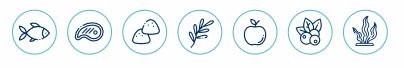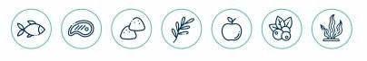 Složení: maso (čerstvé rybí maso ze sledě 21,6 %, dehydrované hovězí maso 20 %, čerstvé hovězí maso 11,2 %, dehydrované rybí maso 4 %), rýže, hrách, drůbeží tuk, sušená jablečná dužina, řepná vláknina, hydrolyzovaný rybí protein 3 %, kvasnice, lososový olej, minerální látky, Ascophyllum Nodosum (Kelpa) PlaqueOff 0,25 %, brusinka, glukosamin, chondroitin sulfát, Yucca schidigera.