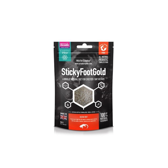 Sticky Foot Gold je v současné době tím nejlepším kompletním krmivem na trhu. Je složeno pouze z přirozených, přírodních a bio produktů a hmyzu, nenajdete v něm tedy žádné nepřirozené složky, jako např. sóju nebo obiloviny.