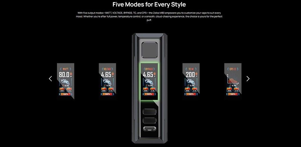 Aspire Zelos M80 elektronický grip s 2600mAh baterií a výkonem 5-80W. Obsahuje Nautilus 3SR tank 2ml, barevný TFT displej, USB-C nabíjení 2A. Pět režimů vapování VW/VV/Bypass/TC/CPS. Kompatibilní se žhavícími hlavami Nautilus a Triton pro MTL i DL styl vapování. Barva: Green & Gunmetal (Šedo-zelená) Celý popis