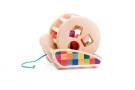 Šneci cestují s ulitami na zádech. A co nese tento? Tento šnek je zvláštní případ. Nese zásobník s různými tvary. Při tahání se šnekova ulita otáčí a dílky uvnitř vydávají zvuk. Hračka má dvě funkce. Je to třídič tvarů i kamarád. Je vybaven ulitou se 6 tvary a 6 otvory, ulitu lze sundat, vysypat tvary a zpátky nasadit. Vpředu má šňůrku. Hra se šnekem poskytuje mnoho vzdělávacích výhod. Učí rozpoznávání tvarů a barev, rozvíjí manuální zručnost a podporuje rozvoj jemné motoriky, zlepšuje koordinaci oko-ruka. Na druhou stranu možnost táhnout za sebou hračku podporuje rozvoj hrubé motoriky. Tato hračka a obal jsou vyrobeny z přírodních zdrojů a lze je snadno recyklovat. Doporučujeme povrch hračky čistit pouze vlhkým hadříkem. Nevystavujte, prosím, tuto hračku vysokým teplotám nebo vysoké vlhkosti, dřevo se za těchto podmínek může ohýbat a deformovat. Splňuje všechny evropské bezpečnostní normy. Hlavní vlastnosti tahací motorická a edukativní hračka v jednompři hře trénuje motoriku dětí různými způsobypři hře stimuluje sluchový vjem dětí