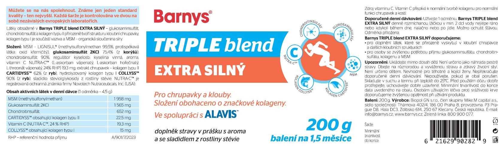 Látky obsažené v doplňku stravy Barny´s TRIPLE Blend EXTRA SILNÝ – glukosaminsulfát, chondroitinsulfát a kolagen typu II tvoří přirozenou strukturu kloubní chrupavky, kolagen typu I je součástí vazů a šlach, MSM je organická sloučenina síry.