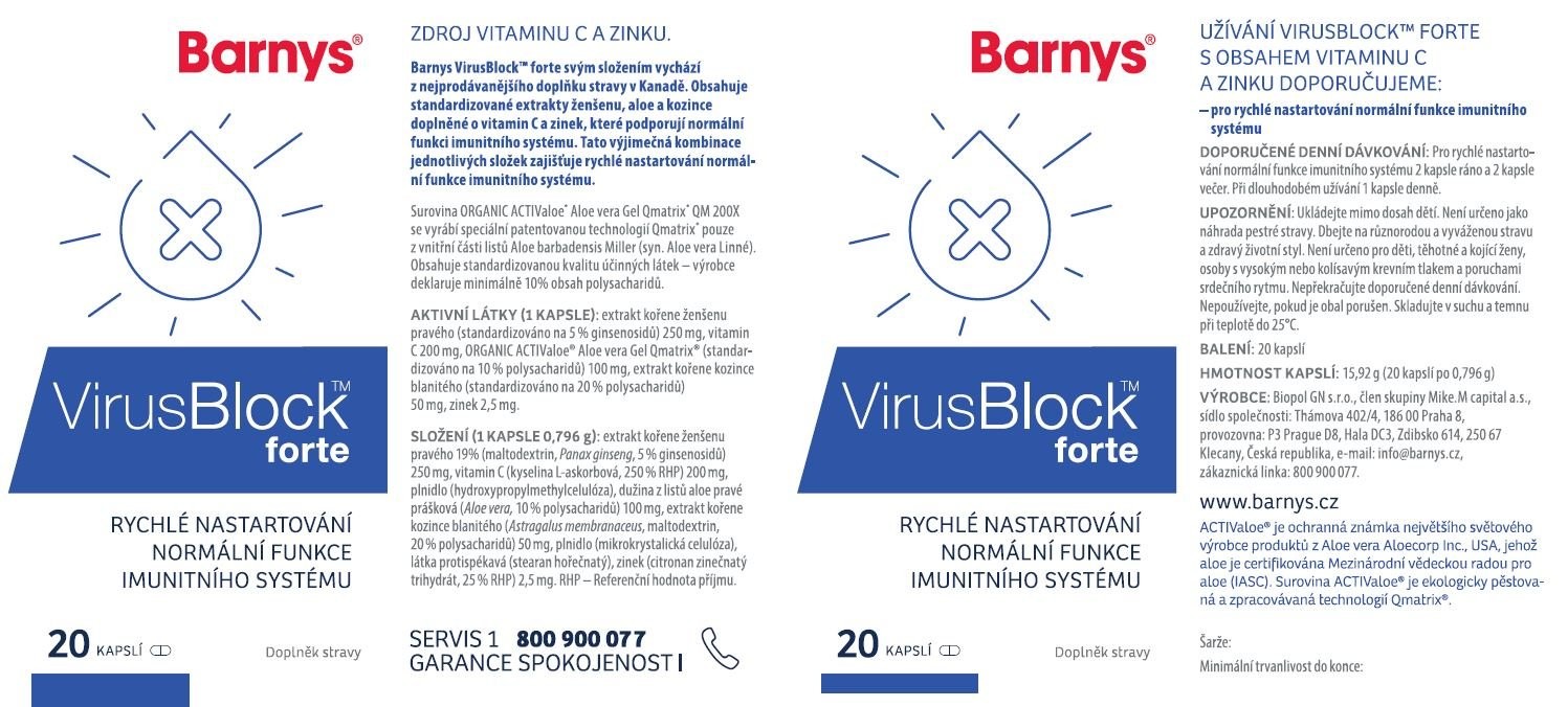 Barny´s VirusBlock™ forte obsahuje standardizované rostlinné extrakty ženšenu, aloe a kozince doplněné o vitamin C a zinek, které podporují dobrou funkci imunitního systému. Tato výjimečná kombinace podporuje nastartování imunitního systému při prvních náznacích jeho oslabení. Ve většině případů stačí užívat pouhých 5 dnů.
