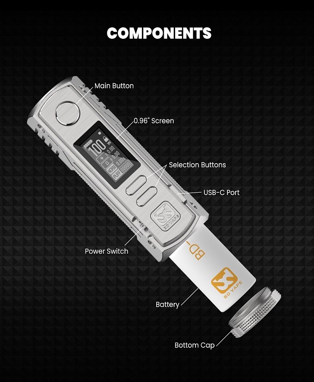 Kompaktní jednobateriový mod 5-100W s čipsetem XT Ultra 1.3, barevným OLED displejem a robustní konstrukcí z hliníkové slitiny. Podporuje 18650/21700 baterie, USB-C nabíjení 2A. Limitovaná edice. Barva: Stainless Steel Celý popis