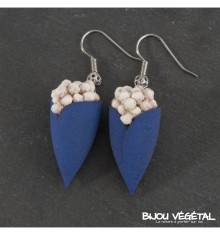 Živé šperky - Náušnice Slza modré s trvalými bílými květy