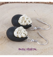 Živé šperky - Náušnice Jardiniere černé s trvalými bílými květy