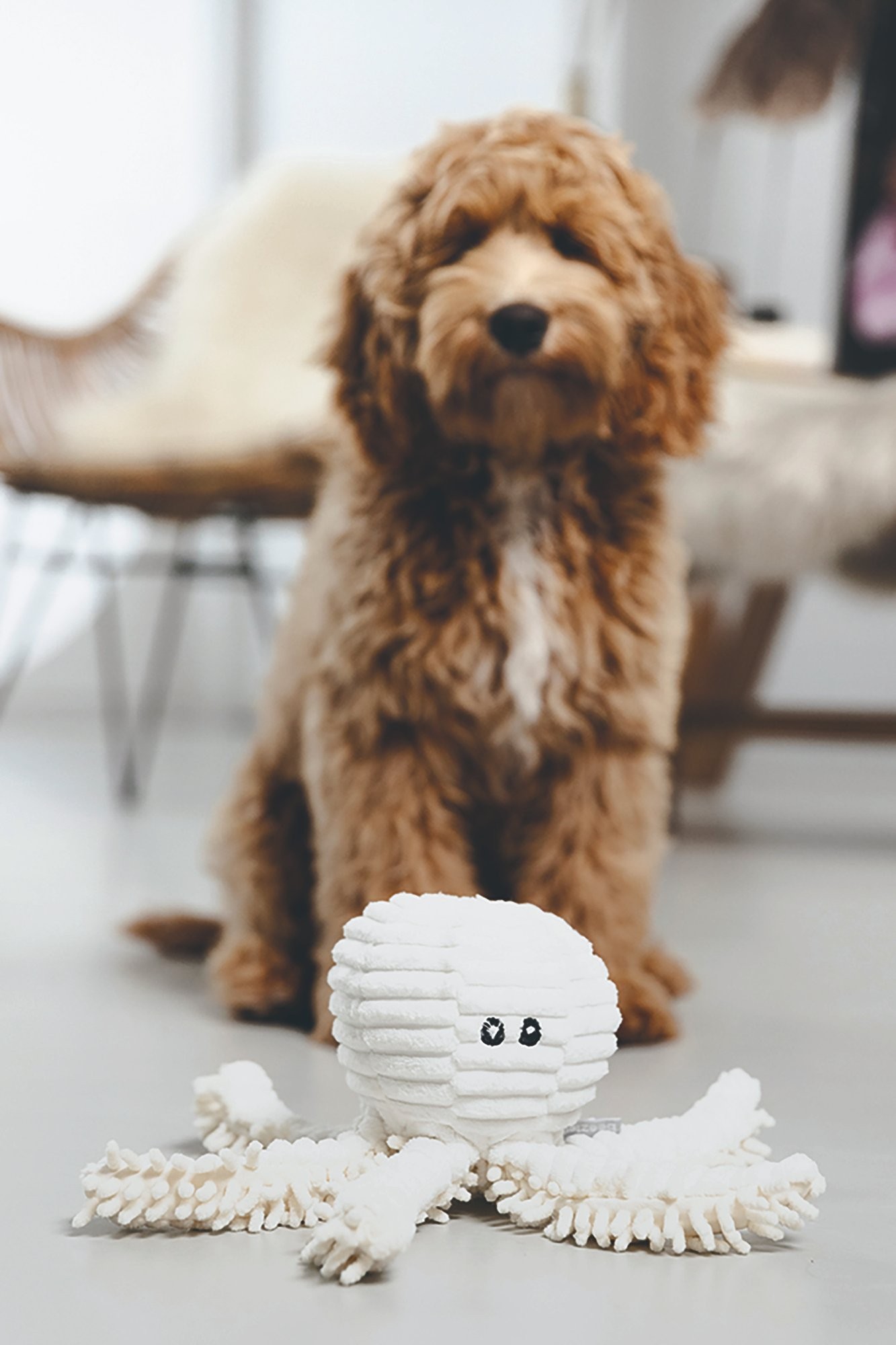 Úžasně měkká hračka pro psy ve tvaru chobotnice je vhodná pro hodiny hraní a mazlení. Když ji umístíte do klece nebo košíku, Váš pes se k ní určitě přitulí. Hračka je vyrobena ze 100% recyklovaného materiálu. Navíc se jedná o hračku bez zvuku, což jistě ocení řada páníčků.
