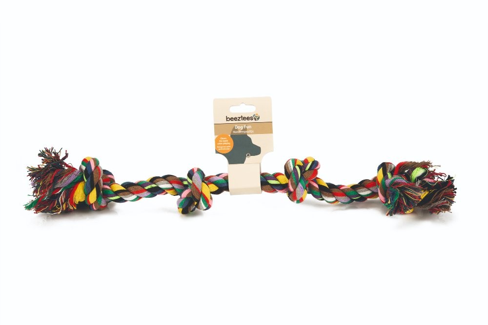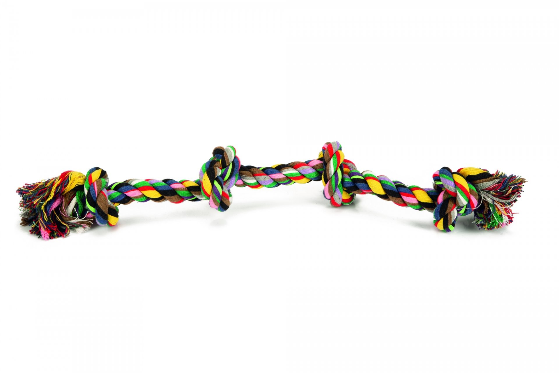 Bavlněné lano se čtyřmi suky je skvělé pro kousání, tahání a plno dalších her, které Vašeho psa kvalitně zabaví. Kousání udržuje zdravé zuby a dásně. Vyrobeno z bavlny. Délka cca 60cm. Hmotnost 350g.