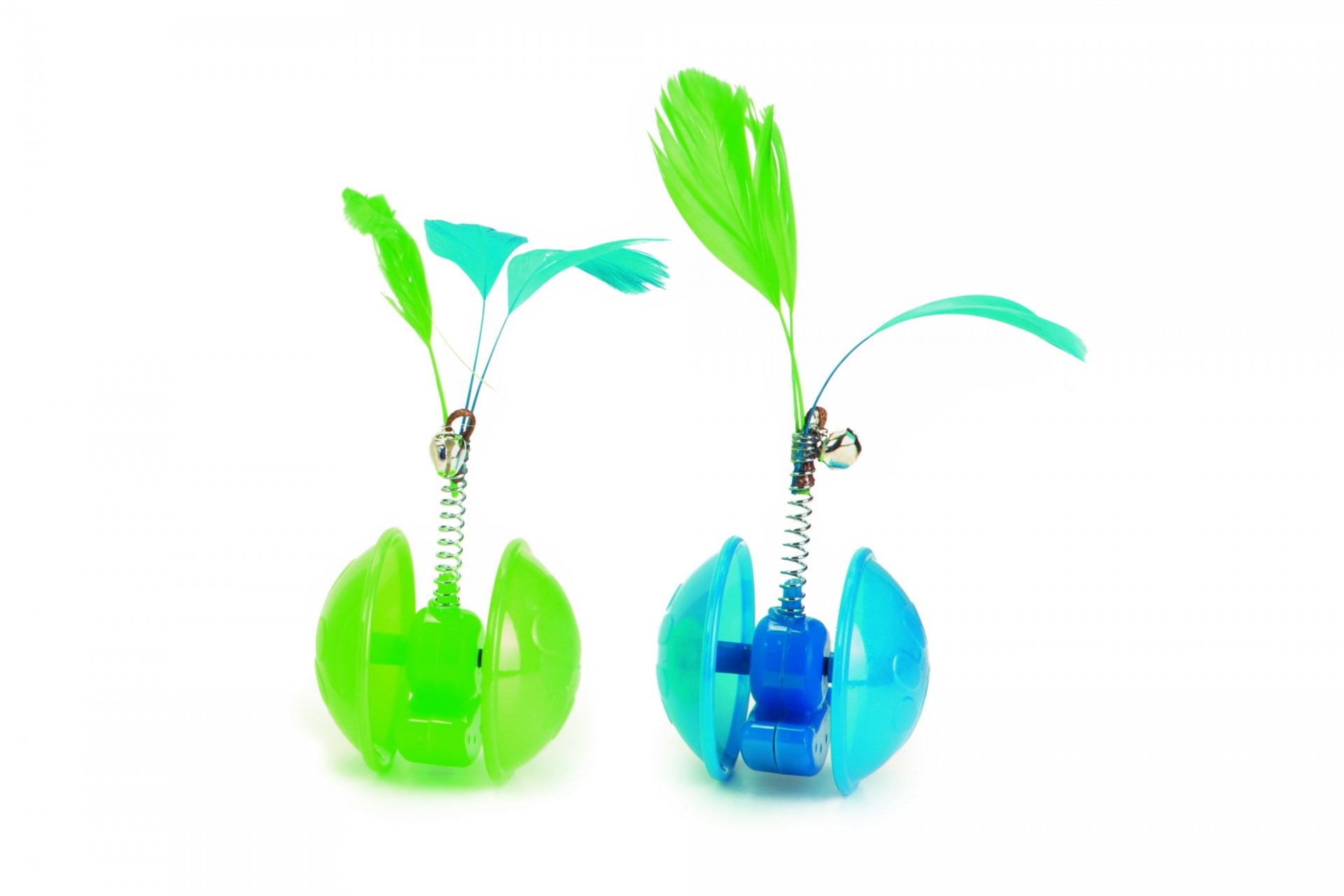 Hledáte hračku, která Vaši kočku zaujme hned na první pohled? Pak jste ji právě našli. Toto kyvadlo kulatého tvaru poskytne Vaší kočce hodiny a hodiny zábavy. Na kyvadlo je připevněna pružina s pírkem, které ještě více rozdovádí Vašeho chlupatého miláčka. Navíc, kdykoliv se tato hračka pohne, rolnička připevněná na pružině zacinká, a Vy tak víte, že se Vaše kočka baví. Ve dvou barevných provedení - zelená a modrá. Velikost 5cm.