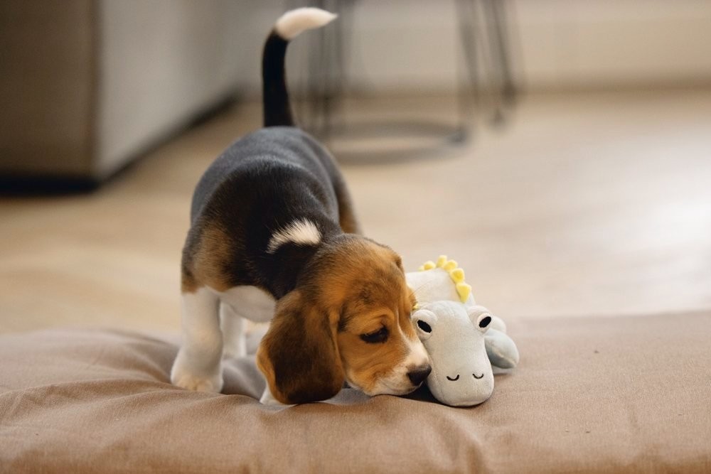 Plyšová hračka pro štěňata dinosaurus Vince. Celý popis