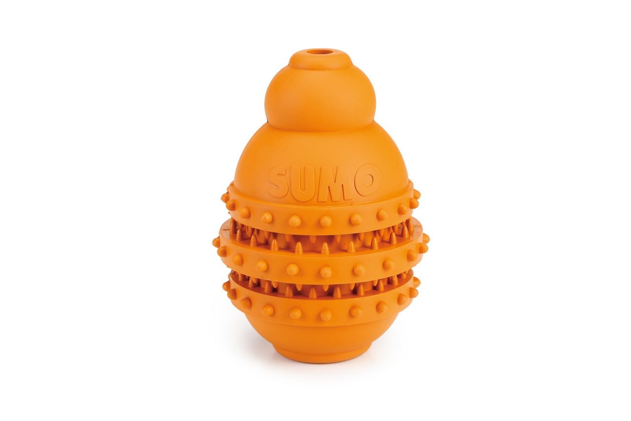 V otvoru ve spodní části Sumo Play Dental můžete schovat chutný pamlsek a Váš pejsek se bude snažit ze všech sil, aby se k němu dostal, což je skvělý způsob, jak zabránit tomu, aby trpěl nudou. Je to ideální hračka, se kterou si Váš mazlíček může hrát nejen, když je sám. Je opatřena drážkami, které podporují péči o zuby, žebrovaný povrch masíruje dásně a pomáhá proti zubnímu kameni a plaku. Praktickou výhodou je možnost mytí v myčce nádobí. Zelená barva. Velikost: 9 x 9 x 12 cm, vhodná pro psy o hmotnosti cca 15-30 kg