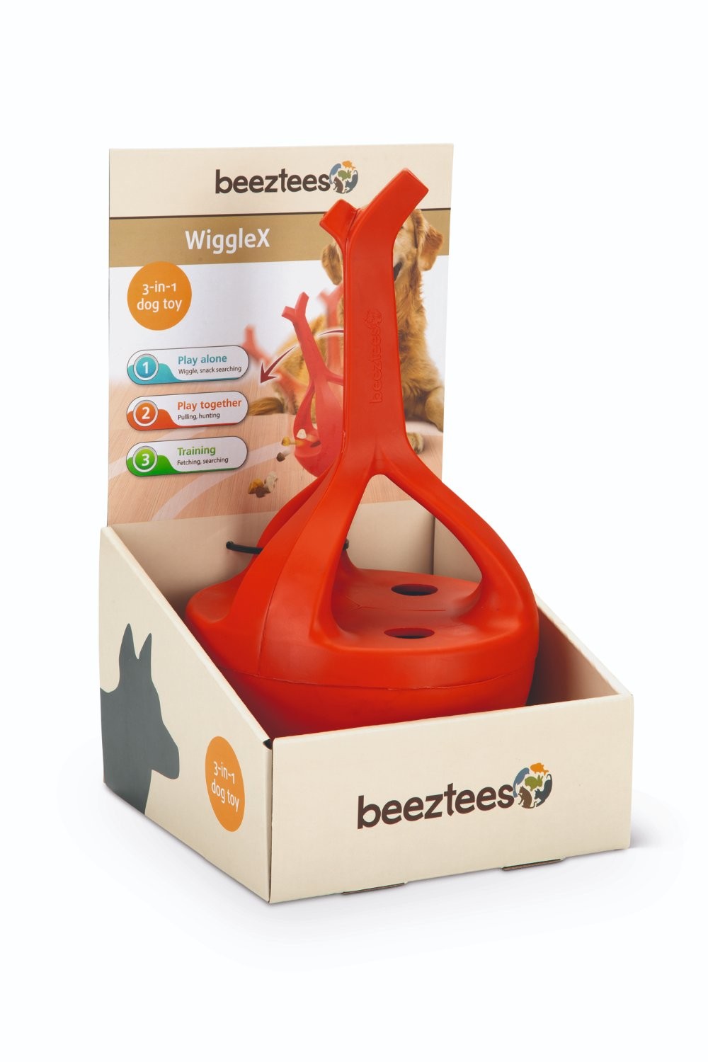 Multifunkční hračka pro psy s mnoha funkcemi! To je Beeztees WiggleX. Má těžkou podsaditou základnu, díky které se kolíbá vpřed a vzad, což Vašeho psa zcela vtáhne do hry. Navíc má v horní části 3 otvory, kde můžete ukrýt oblíbený pamlsek. Rozkolíbáním ho Váš psí mazlíček po chvíli získá ven. Hračku můžete používat i jako aportovací pomůcku. Flexibilní rukojeť je pohodlná pro uchopení i házení. Rozměr: 17x17x30 cm