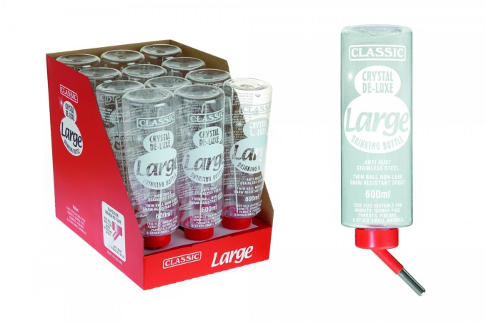 Klasická napáječka poskytuje Vašemu mazlíčkovi dostatek čerstvé vody. Je vyrobena z recyklovatelného materiálu a jednoduše se připevní na klec nebo výběh pomocí upevňovacího drátku. Díky transparentnosti budete mít vždy přehled, je-li v pítku dostatek vody. Dvojitý kuličkový systém zabraňuje prosakování, takže klec a výběh zůstanou vždy suché a čisté. Objem: 600 ml – pro králíky.