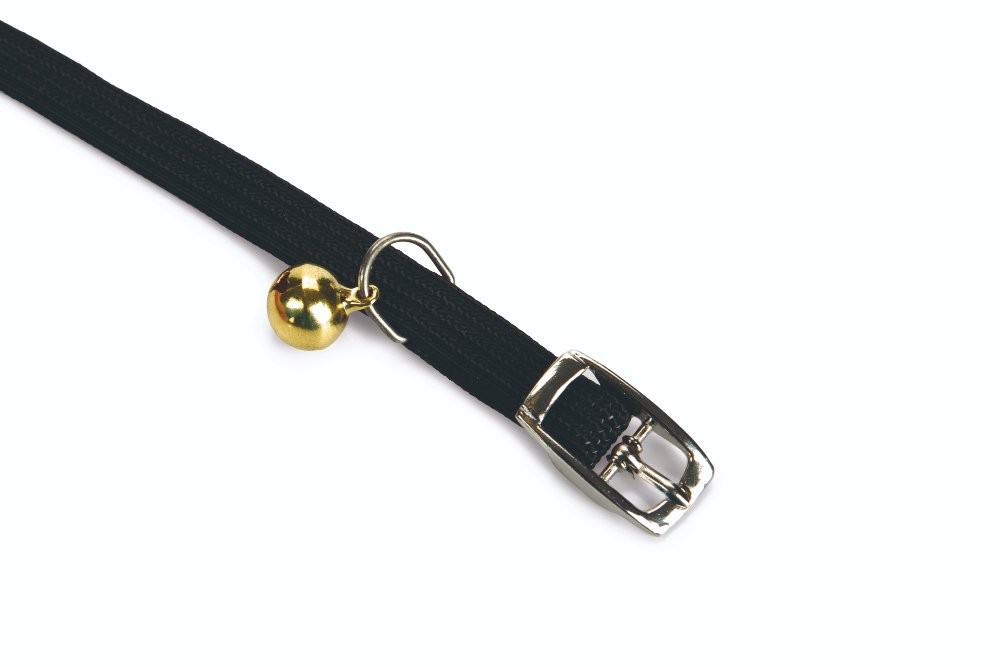 Černý nylonový obojek pro kočky s rolničkou. Celý popis