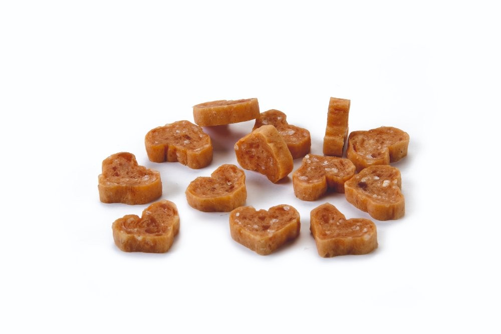 Pamlsky pro kočku s obsahem kuřecího masa ve tvaru srdíčka. Celý popis