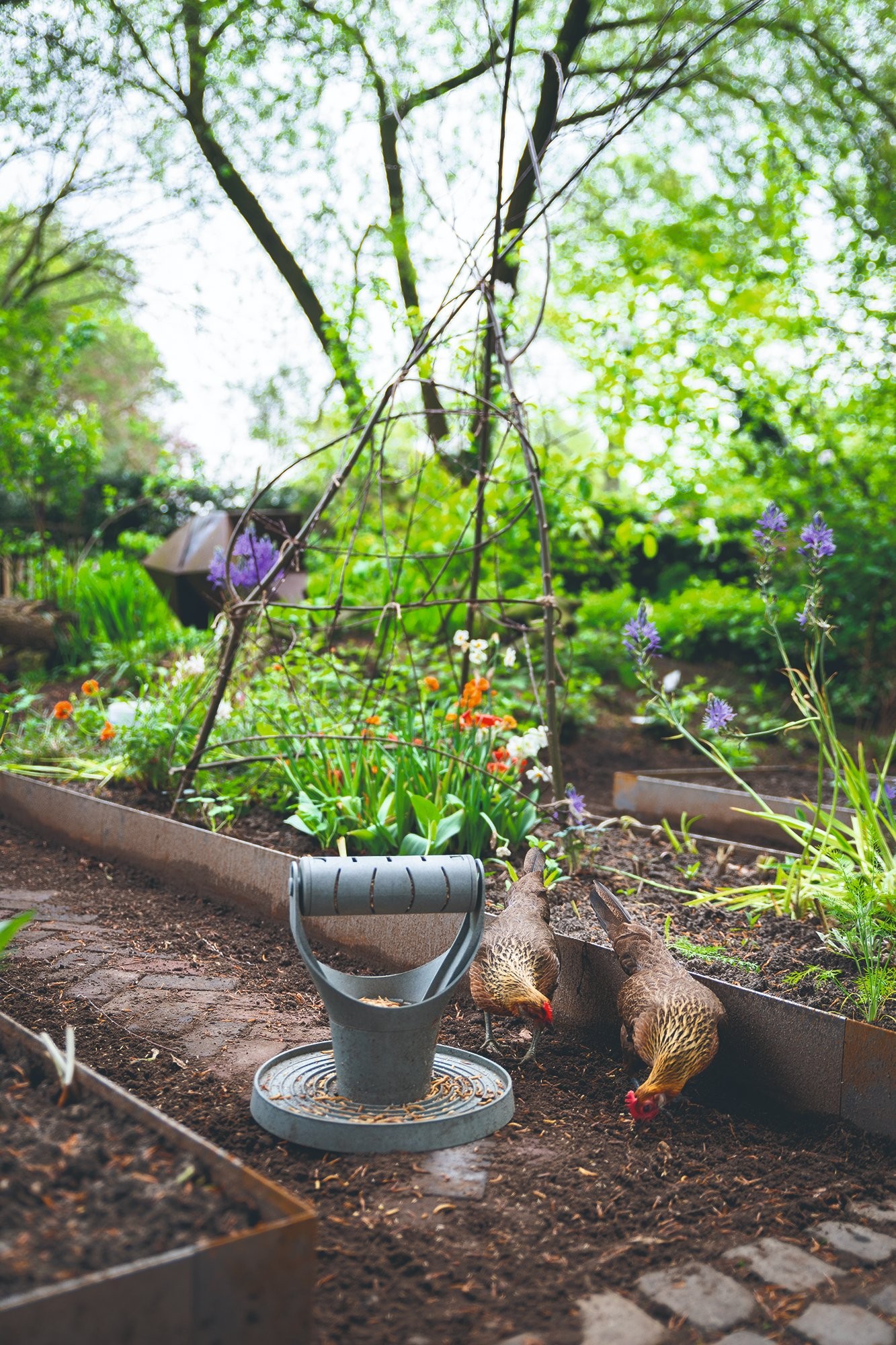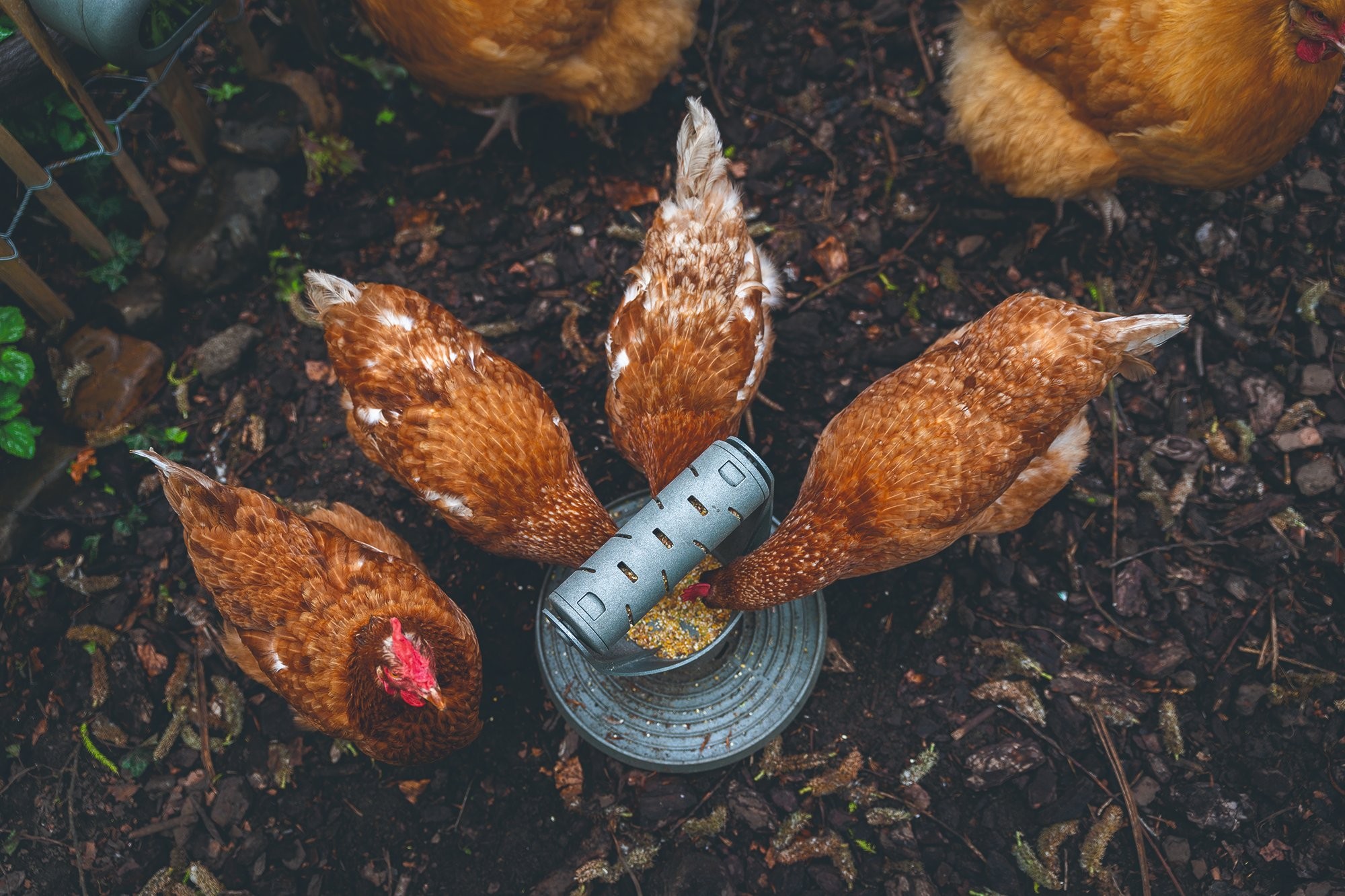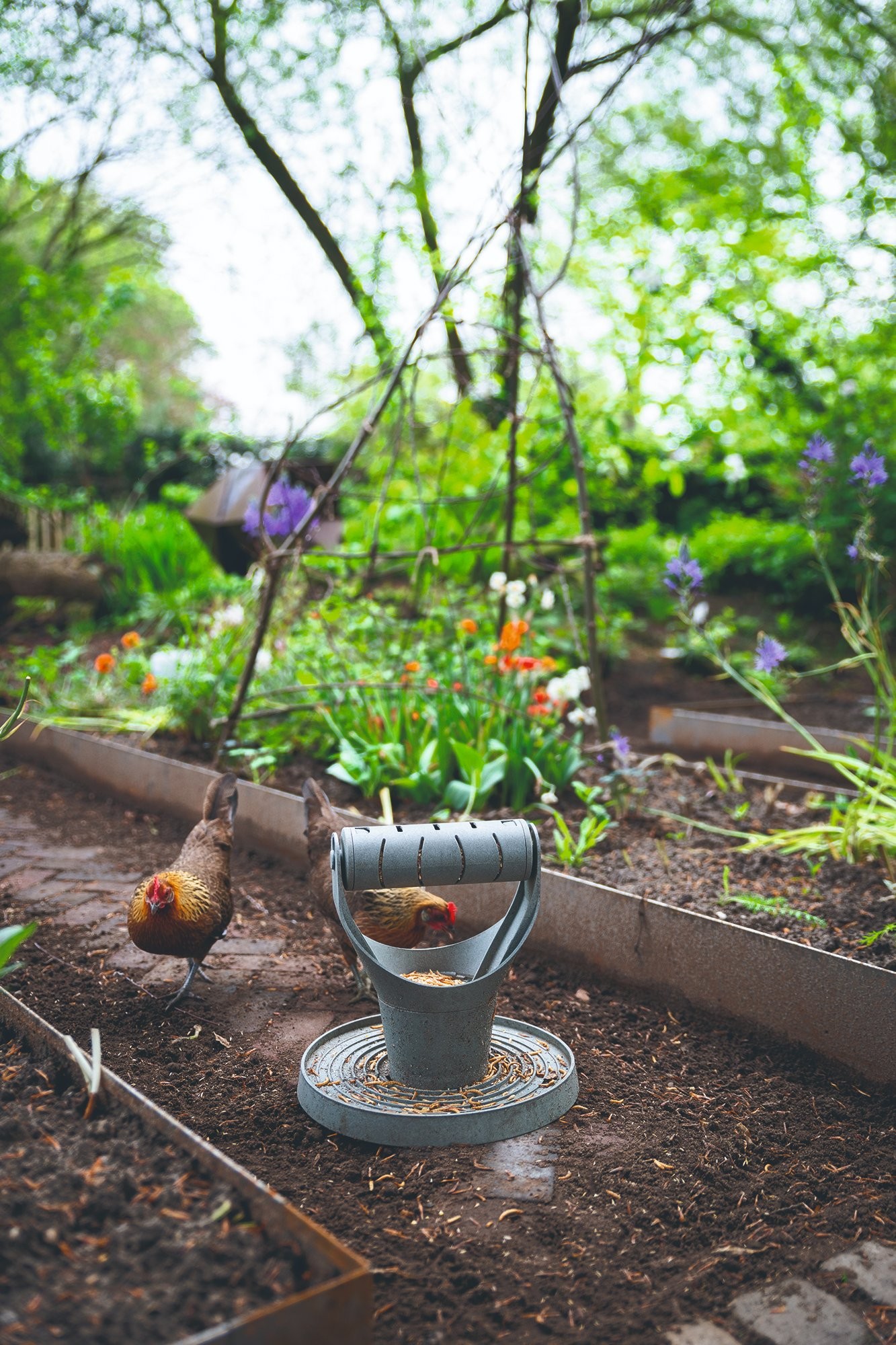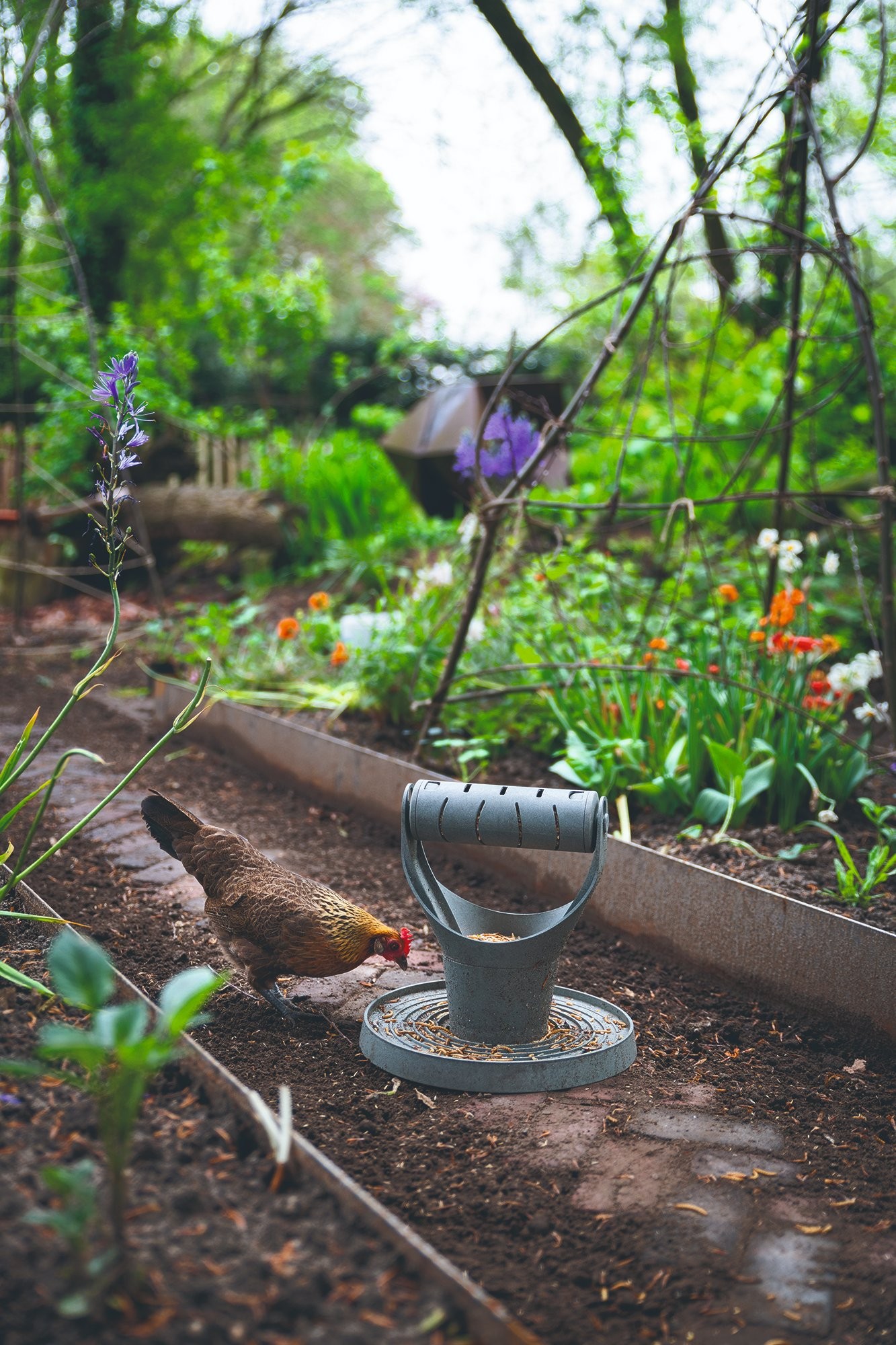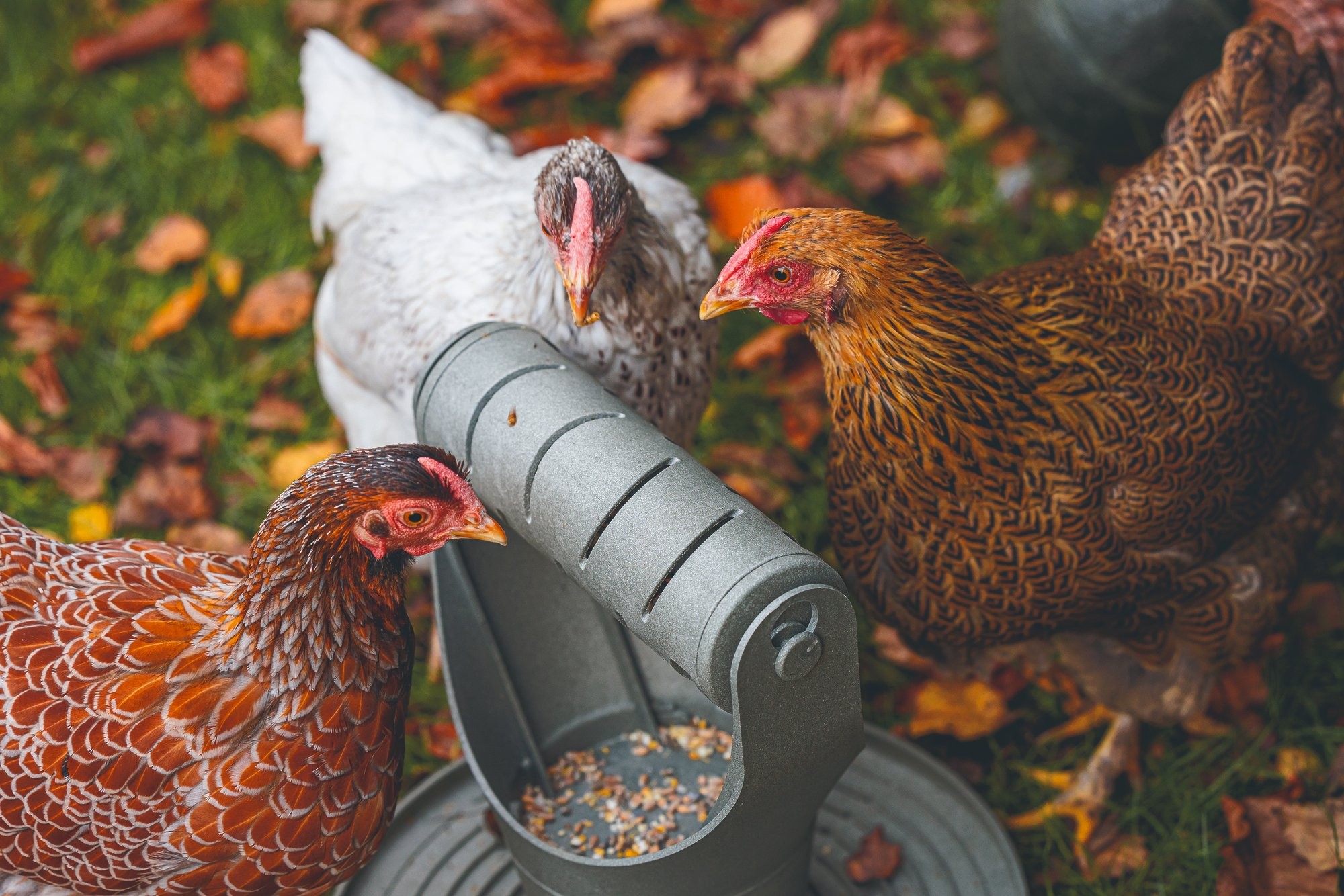 Krmicí věž nabízí kuřatům a slepicím i zábavnou výzvu v podobě otáčivého válce, který lze naplnit krmivem. Pokud do něj správně klovnou, budou okamžitě odměněny.