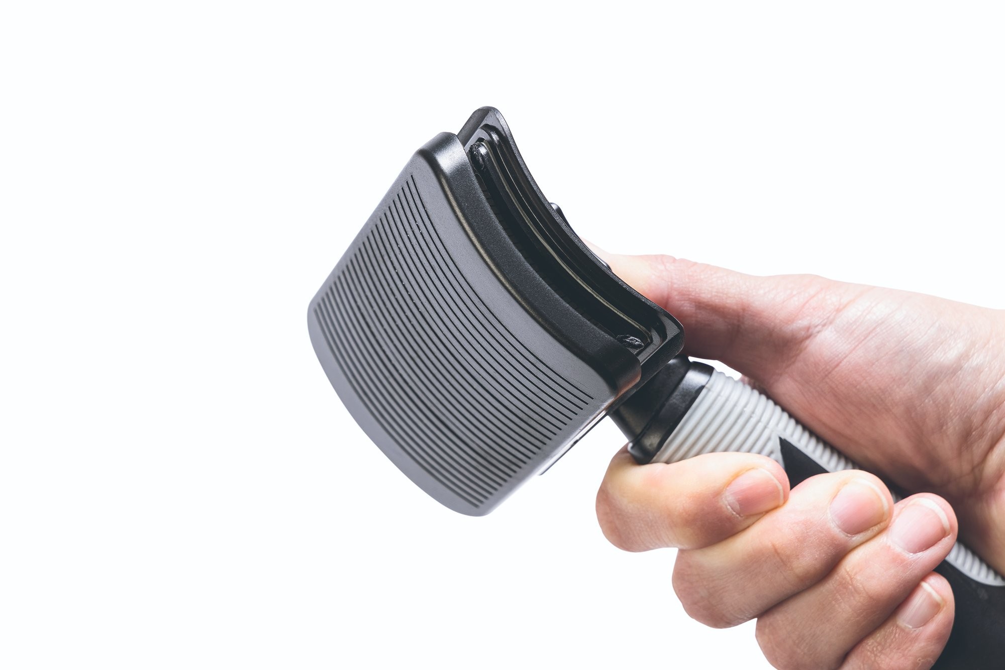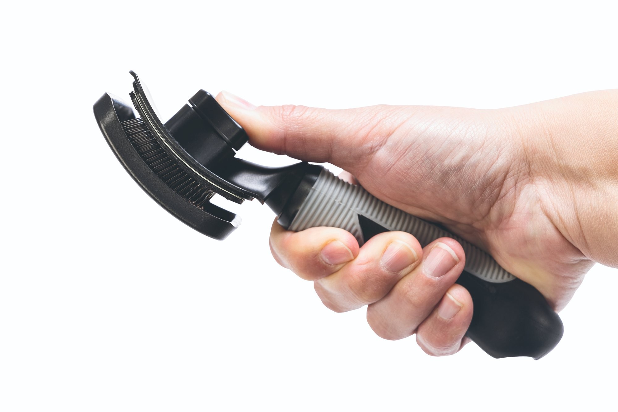 Následné odstranění chlupů a nečistot z kartáče je super snadné! Stiskem tlačítka na kartáči systém "seškrábne" chlupy a nečistoty. Ty tak z kartáče snadno odstraníte.