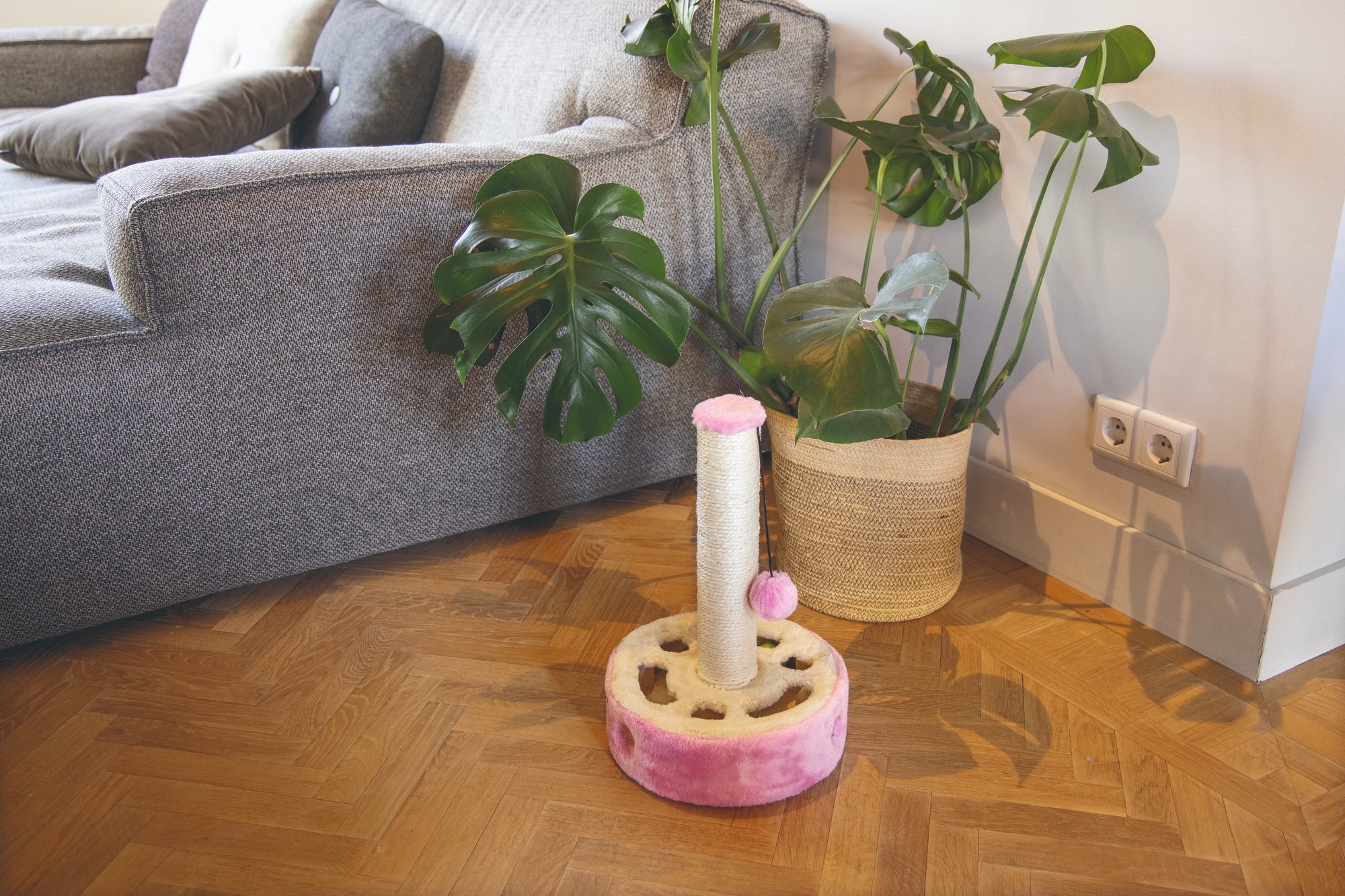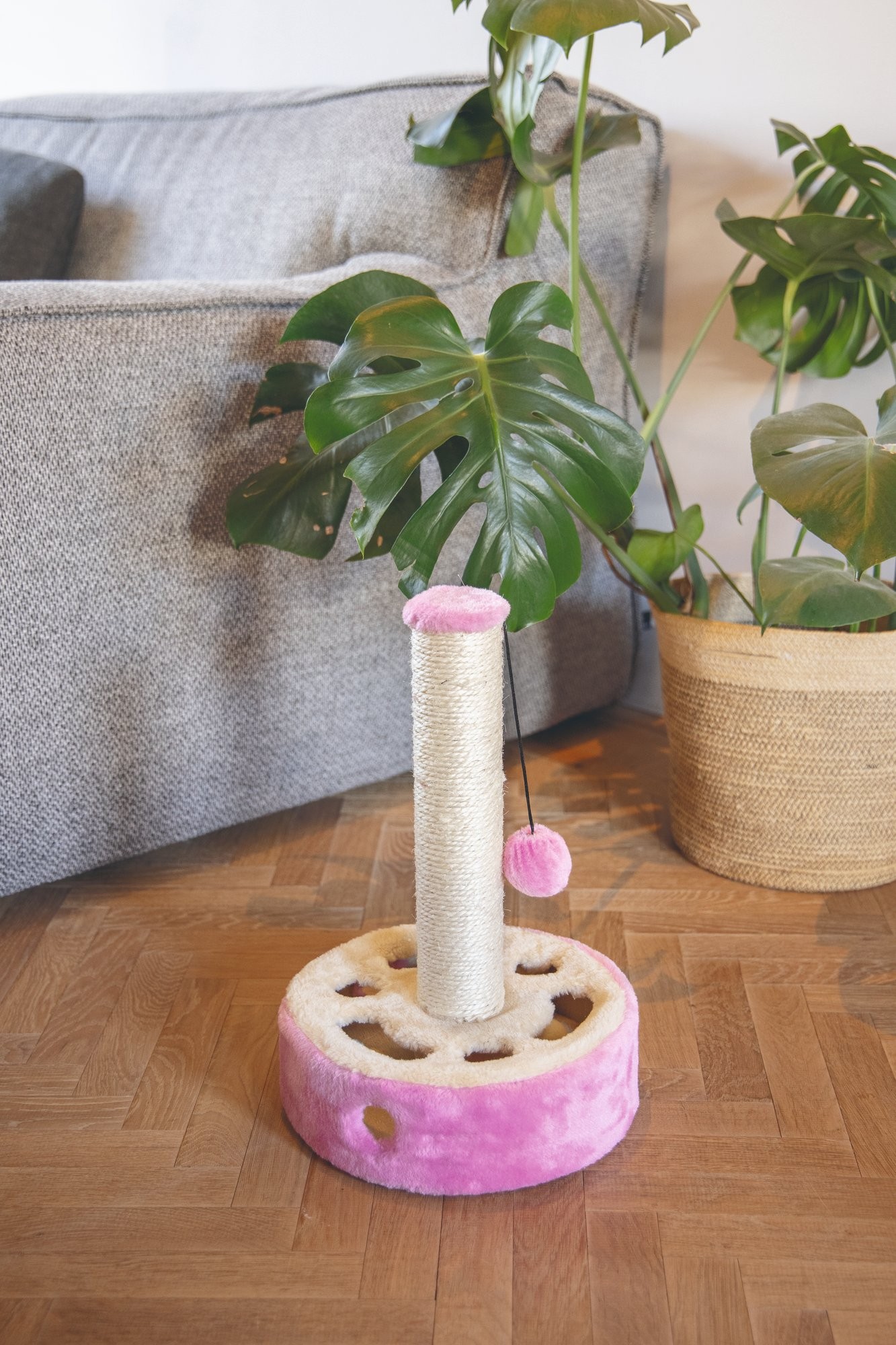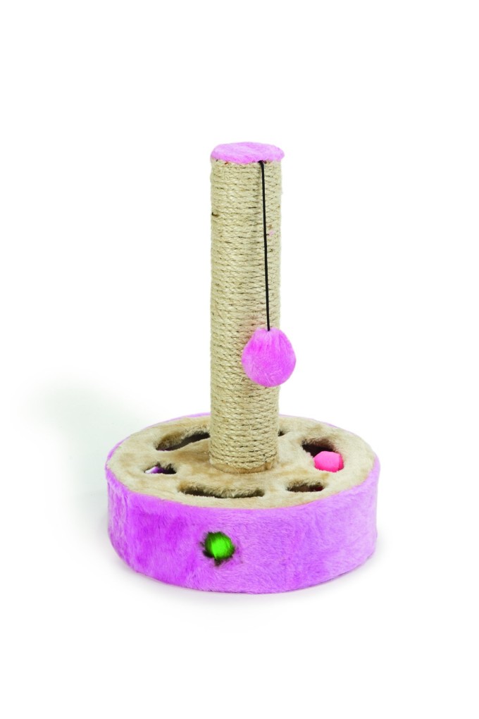Zábavné škrabadlo nabízí Vašemu mazlíčkovi skutečnou hru na schovávanou. Spodní část tvoří kruhová krabice s několika otvory. kde jsou ukryté plyšové míčky. Kočka při jejich lovení zaměstná packy i mozek. Zrelaxovat se může nekonečným škrábáním sisalového sloupku. Ke hře vyzývá také zavěšený plyšový míček, kterému odolá jen stěží :)