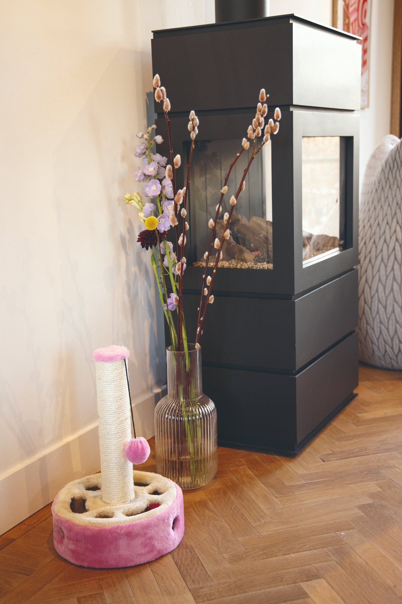 Škrabadlo s herními prvky pro kočky. Celý popis