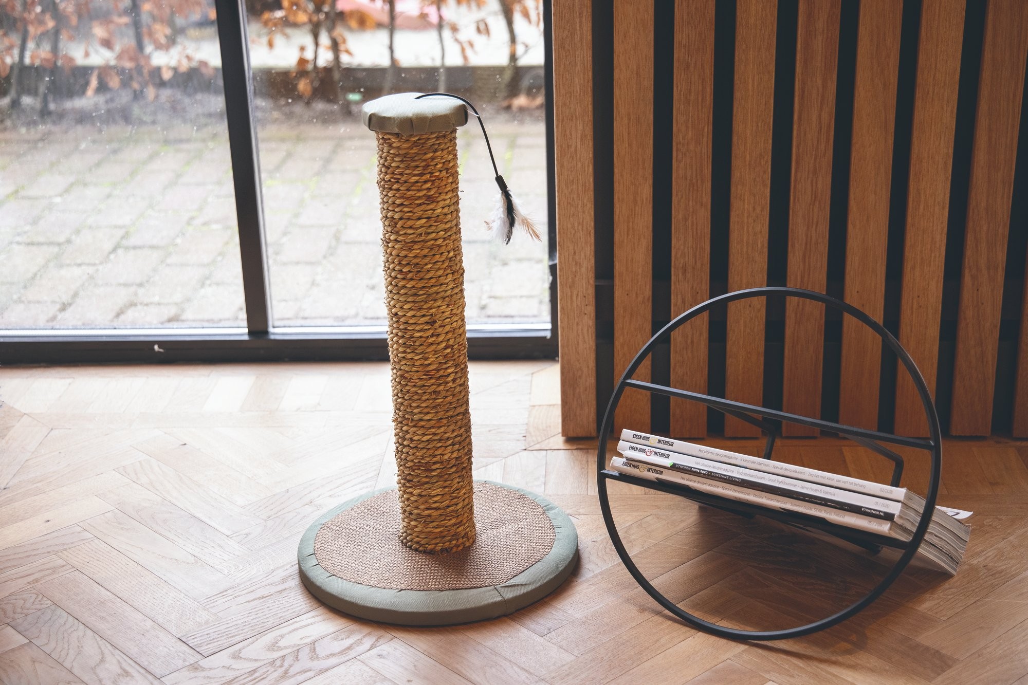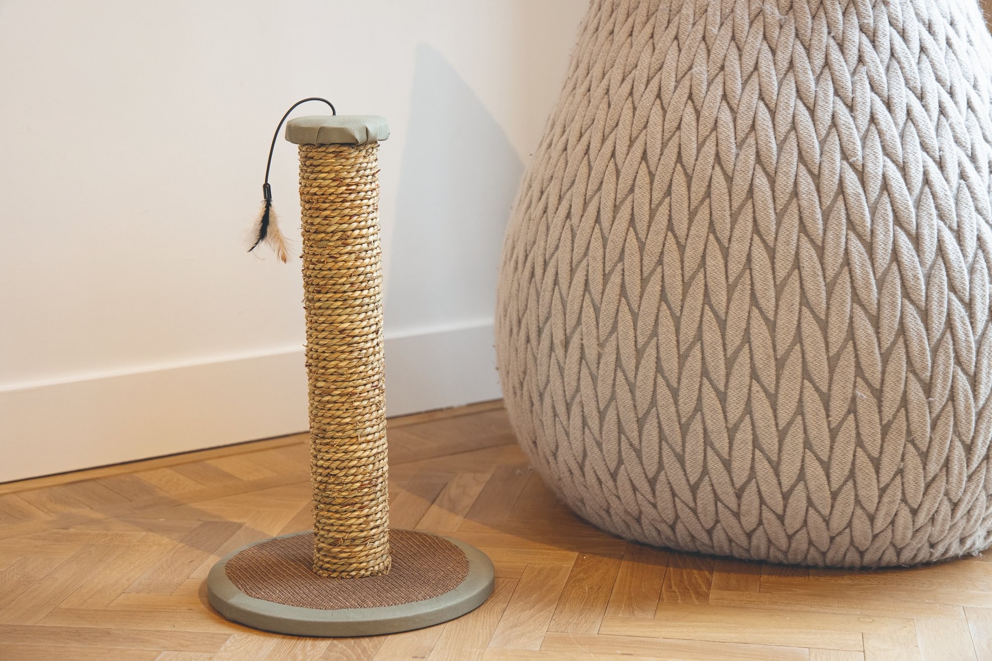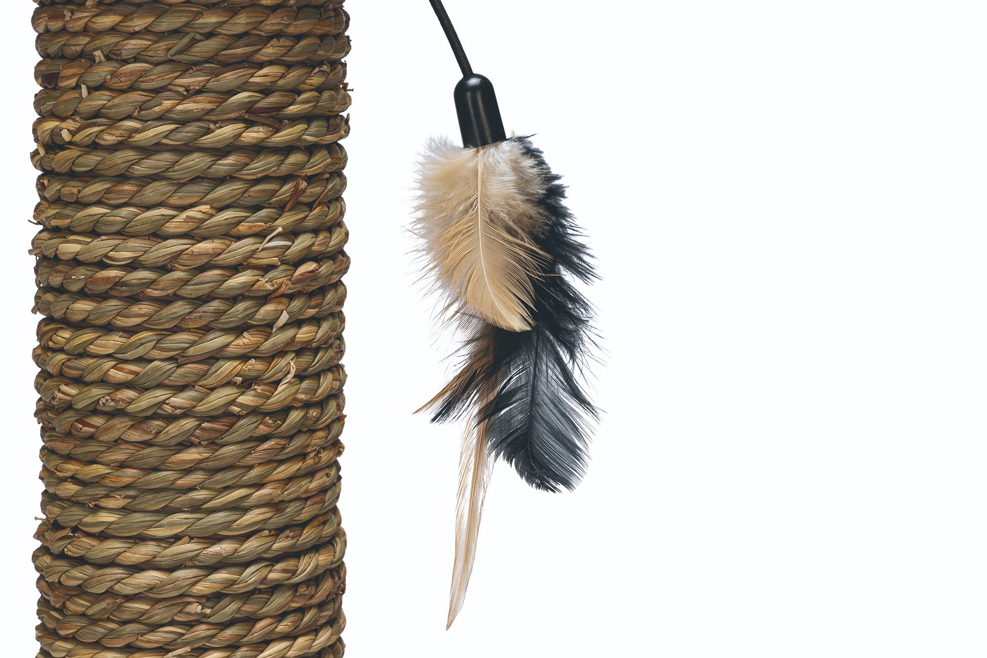 Škrabadlo pro kočky s efektním pírkem. Celý popis
