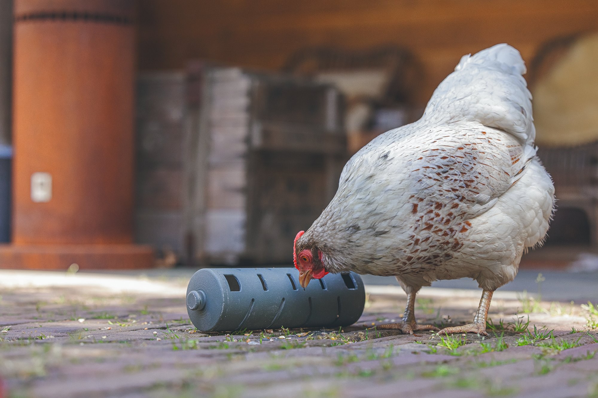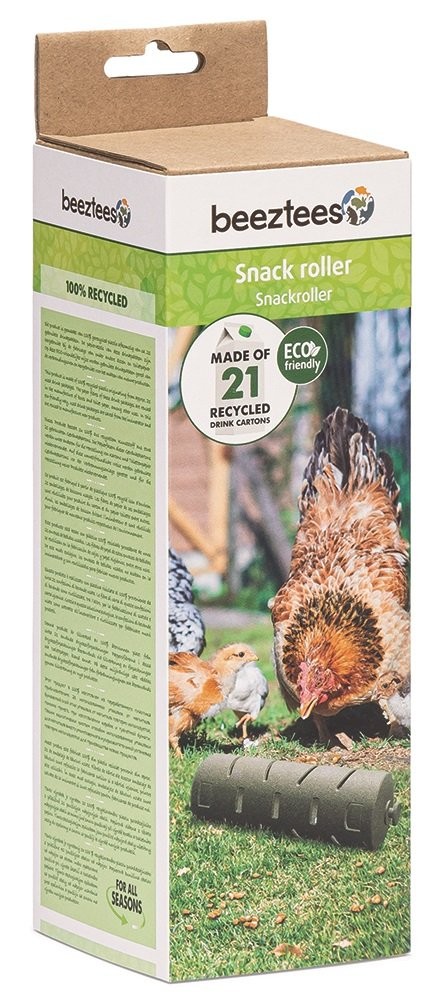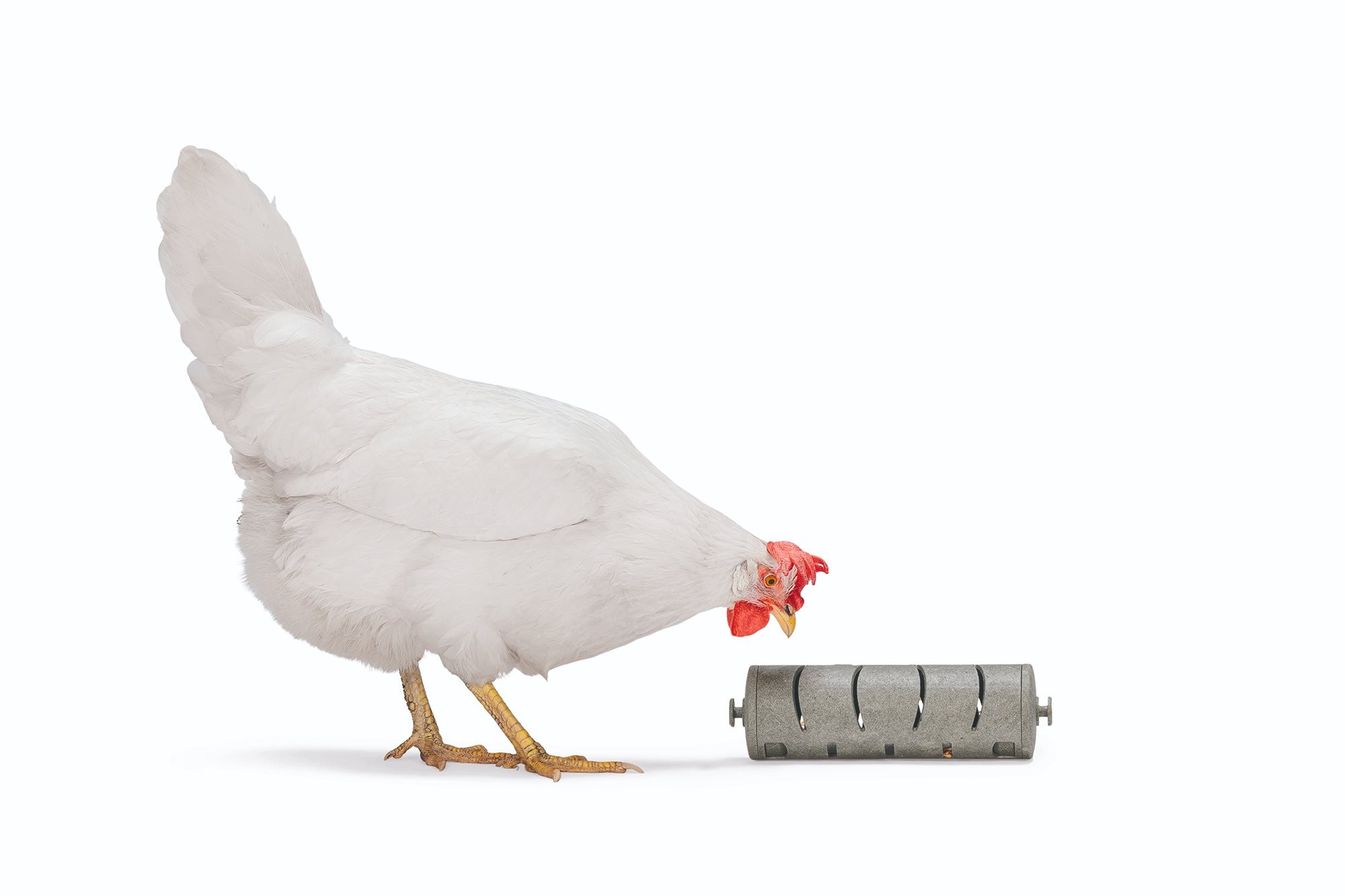 Snack Roller je zábavná hračka pro kuřata, kterou lze použít dvěma způsoby. Nejprve naplňte válec krmivem a pak se můžete rozhodnout, zda jej položíte na zem nebo zavěsíte. Jakmile kuře do válce začne klovat, krmivo vypadává a kuře se tak hravě odměňuje. Perfektní produkt na krmivo bohaté na bílkoviny, které uspokojí energetické potřeby v chladných dnech.