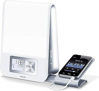 * probuďte se přirozeně jasným světlem * simulované barvy východu a západu slunce * buzení rádiem nebo zvukem budíku * vyberte si ze 8 různých melodií buzení * lze připojit MP3 přehrávač nebo chytrý telefon (odkládací plocha) * funkce Snooze (1-30 min) * 10 předvoleb rádia * nastavitelná intenzita světla * mění barvu * podsvícený LCD displej * nastavitelný jas LCD * lze použit i jako noční lampa * nastavitelná intenzita světla (20 úrovní) * intenzita světla 2500 lux (ve vzdálenosti cca. 15 cm) Celý popis