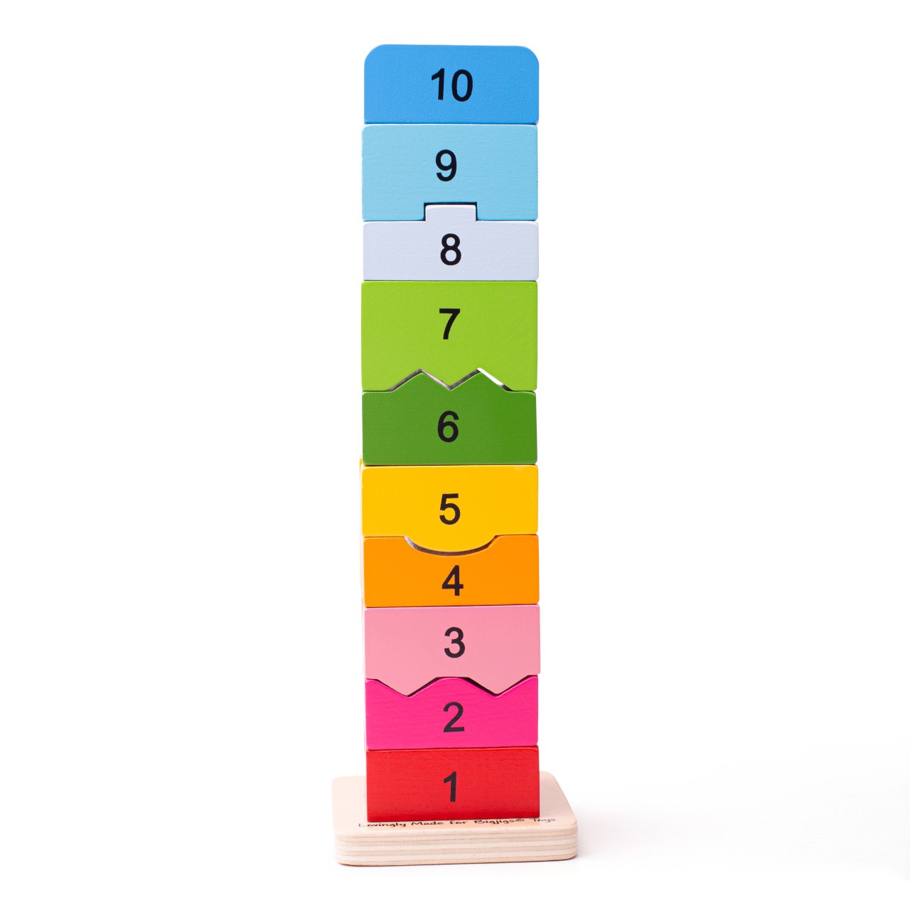 Stavěj věž a počítej bloky. Tak by se dala nazvat tato dřevěná očíslovaná věž v mnoha barvách, kde má každý barevný blok své číslo a vaše dítě se při jeho stavbě učí, jak napočítat od jedné do deseti. Jednotlivé bloky jsou skládačkového typu, dítě se tak učí dávat správné tvary k sobě. Každá jednotlivá kostka má specifický tvar, takže do sebe zapadají jen tak, jak jsou očíslovány. Bez středové tyče. Vyrobeno z vysoce kvalitních materiálů ze zodpovědných zdrojů. Vyhovuje současným evropským bezpečnostním normám. Obsahuje 11 dílů. Hlavní vlastnosti: procvičuje rozpoznávání čísel a počítáníobsahuje 11 dílůbloky jsou skládačkového typu, zapadají do sebe jen správné tvary