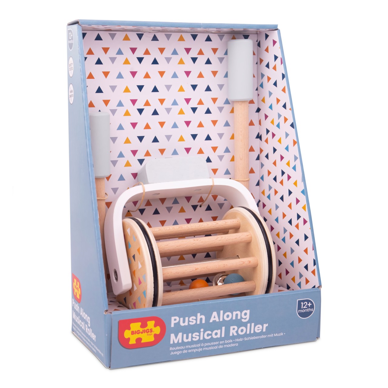 Krásná dřevěná hračka, hudební váleček ze 100% FSC® dřeva hravě procvičí dětskou zručnost, motoriku a podpoří rozvoj jejich smyslů. Váleček se pohybuje pomocí dlouhé tyče, stačí jí strkat dopředu a uslyšíte jak se rolnička pohupuje mezi dřevěnými laťkami. Vydává opravdu kouzelný zvuk.Hračka je vyrobena v kombinaci přírodního a barevného dřeva, má barevné detaily ve tvaru trojúhelníků, barvičky stimulují zrak, rolnička stimuluje sluch. Hudební váleček je vyroben ze 100% FSC® materiálů prémiové kvality. To znamená, že každý použitý strom je znovu vysazen a ponéchan přirozenému růstu. Dřevo je hladké (nemusíte se bát třísek) a barvy jsou bezpečné pro děti. Hlavní vlastnosti: od 12 měsícůrozvíjí smyslové dovednosti100% FSC® dřevo Značka a certifikát FSC® (Forest Stewardship Council) zaručuje, že dřevo, ze kterého byl produkt vyroben, nebylo vytěženo nelegálně a pochází z lesů obhospodařovaných šetrným či přírodě blízkým způsobem, ve kterém jsou dodržovány přísné environmentální a sociální požadavky. Značka FSC® na výrobku znamená, že svým nákupem pomáháte chránit lesy a podporujete šetrné, odpovědné či přírodě blízké hospodaření, díky kterému jsou naše lesy stabilnější, zdravější, mají přirozenou druhovou skladbu a lépe odolávají negativním následkům klimatických změn.