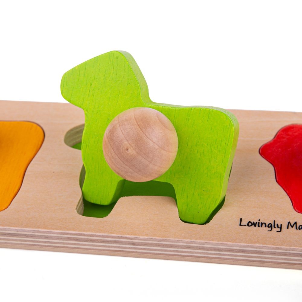 Přiřaďte každý pestrobarevný dřevěný dílek ke správně tvarovanému otvoru na základní desce. Dřevěné puzzle Bigjigs Toys pomáhají rozvíjet slovní zásobu a pomáhají dětem vybavit si slova, když rozpoznávají tvary, barvy a obrázky. Každý masivní dřevěný dílek puzzle má ideální velikost, aby ho malé ručičky snáze zvedly, uchopily, prozkoumávaly a vyměňovaly. Pomáhá rozvíjet zručnost, smyslové dovednosti a koncentraci. Dřevěné základní desky puzzle Bigjigs Toys jsou potištěny obrázky nebo barvami, které napomáhají procesu učení a zvyšují vzdělávací hodnotu. Vyrobeno z vysoce kvalitních, zodpovědně získaných materiálů. Splňuje aktuální evropské bezpečnostní normy. Obsahuje 5 dílků puzzle s úchyty. Hlavní vlastnosti: obsahuje 5 dílkůvelké dílky puzzle s úchytypomáhá rozvíjet zručnost, smyslové dovednosti a koncentraci