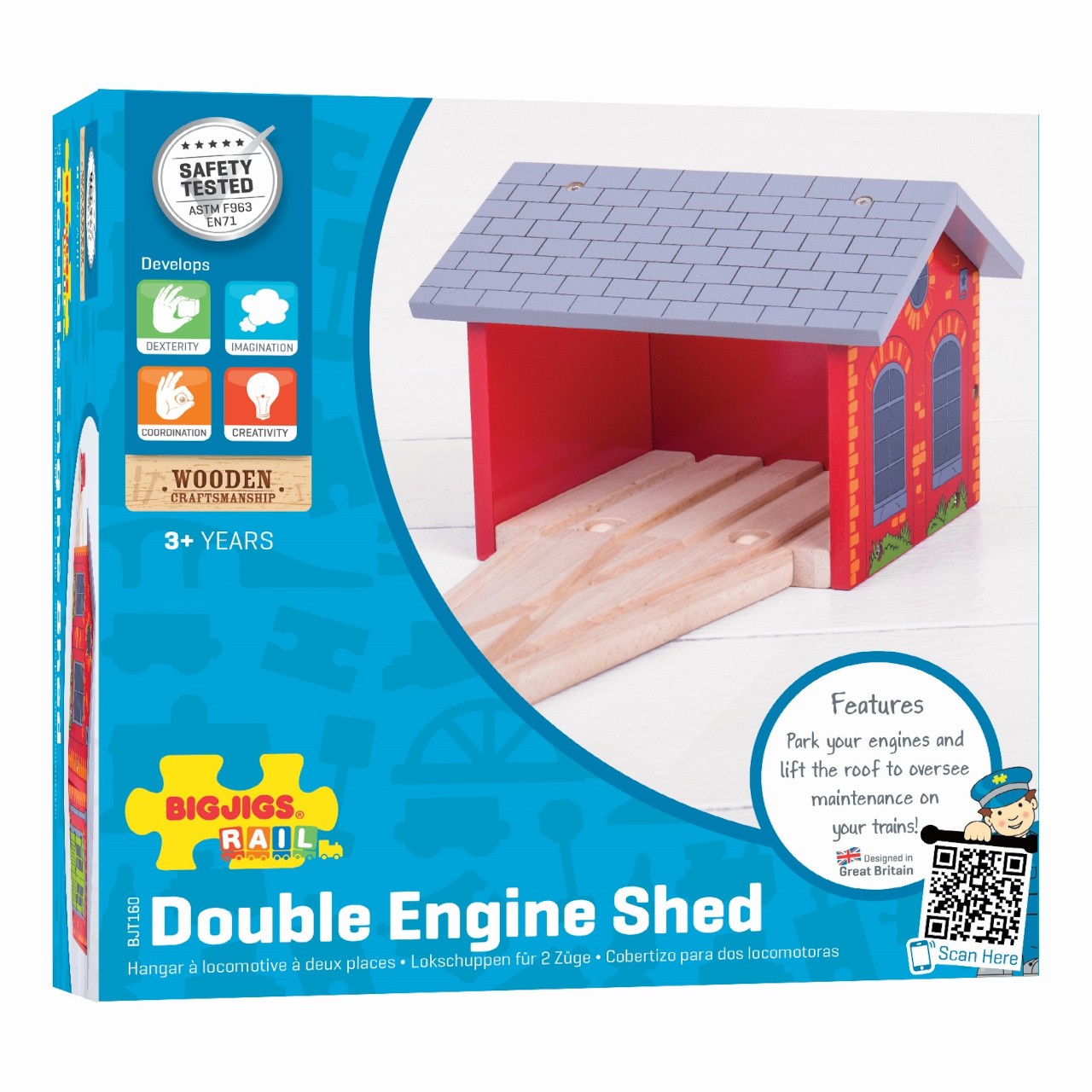 Dřevěné železniční depo pro 2 vláčky včetně vjezdové koleje.Kompaktní a dobře navržené depo má schopnost uložit až 2 vlaky. Skvělý doplněk dřevěné vláčkodráhy pokud máte v daném okamžiku přebytek vašich vláčků nebo pokud je jen potřebujete nechat odpočinout nebo natankovat.Hlavní vlastnosti: Vláčkodráhy a jejich příslušenství značky Bigjigs Rail je možno kombinovat se všemi dalšími dřevěnými vláčkodráhami na trhu.Vyrobeno z kvalitních a zodpovědně získaných přírodních materiálů.Odpovídá současným evropským bezpečnostním normám.Podporuje představivost, obratnost a koordinaci.