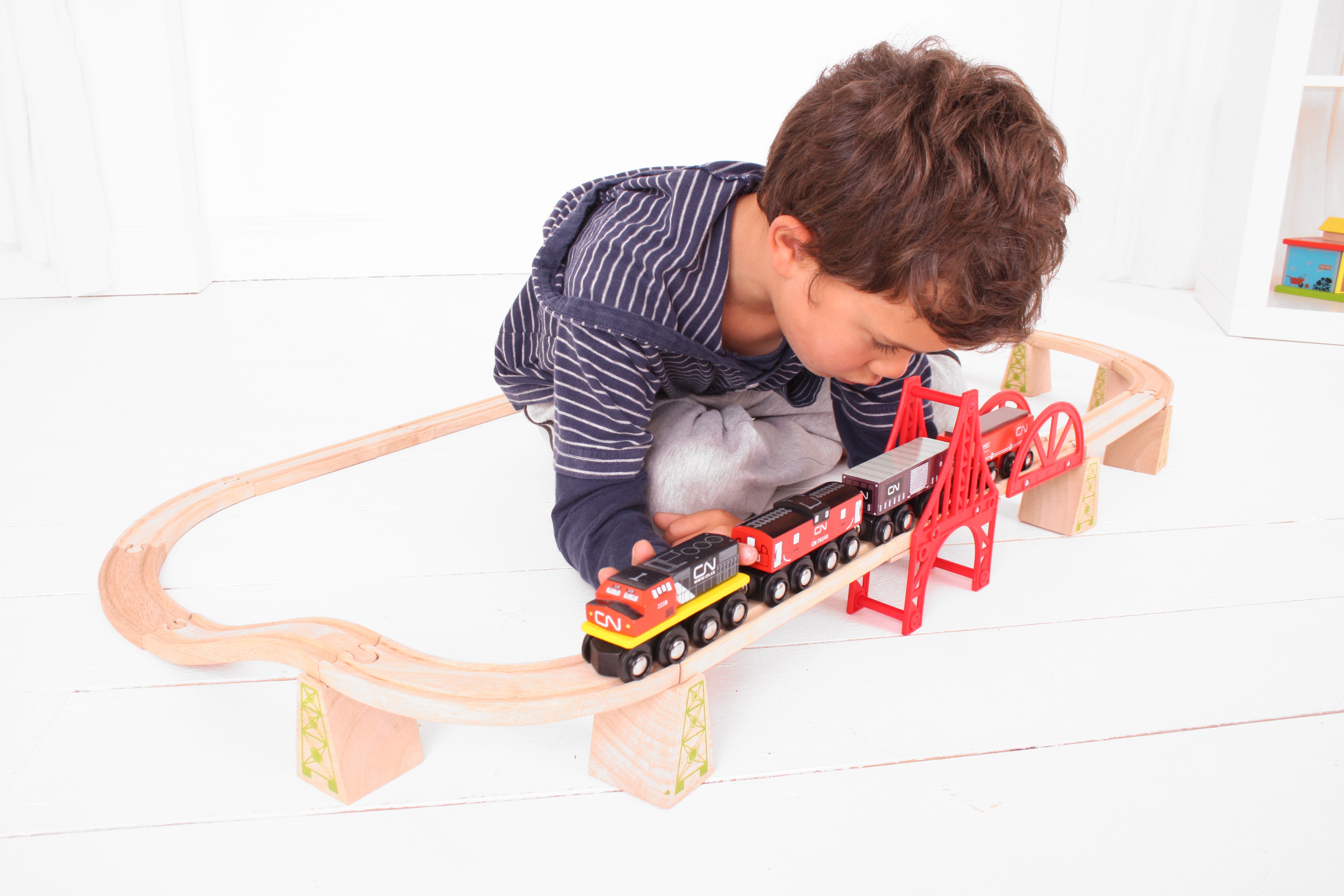 Součásti balení jsou také koleje: 1ks střední kolej BJT101 a 1ks dlouhá kolej BJT100!Hlavní vlastnosti: Vláčkodráhy a jejich příslušenství značky Bigjigs Rail je možno kombinovat se všemi dalšími dřevěnými vláčkodráhami na trhu.Vyrobeno z kvalitních a zodpovědně získaných přírodních materiálů.Odpovídá současným evropským bezpečnostním normám.Podporuje představivost, obratnost a koordinaci.
