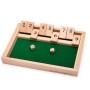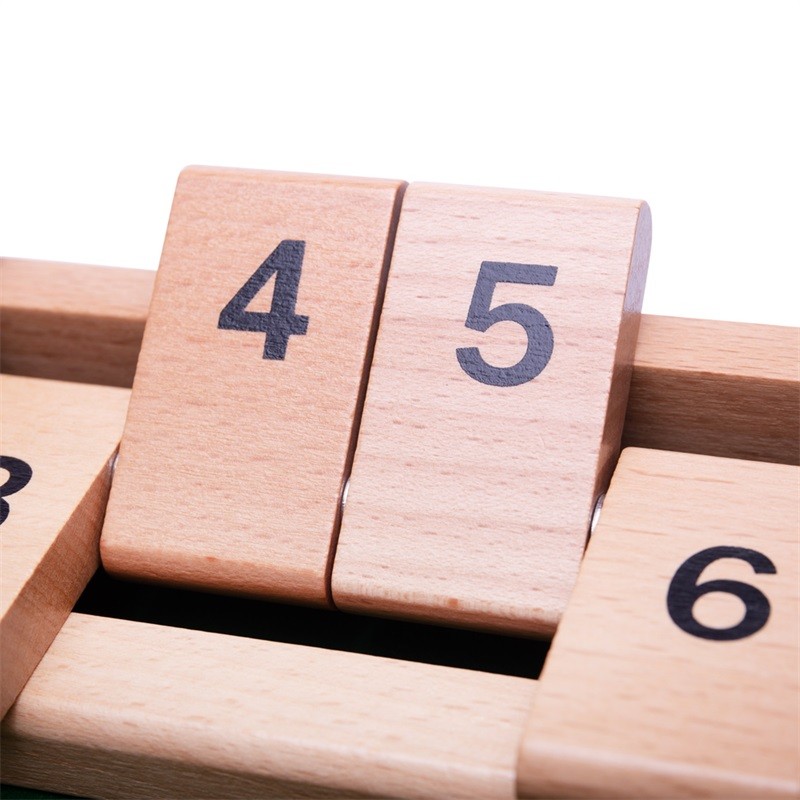 Zábavná hra, která dětem zlepšit jejich numerické dovednosti. Hoďte dvojicí kostek a zavřete destičky, (maximálně dvě) které se rovnají celkovému počtu hodů kostkou. Pokračujte ve hře dokud nebude možné zavřít žádné další destičky. Zbylý součet neotočených destiček si zapište. Hraje se do určeného počtu trestných bodů, zpravidla do 200, vyhrává pak hráč s nejmenším počtem trestných bodů. Vzdělávací a zábavná hra, může ji hrát jeden nebo více hráčů. Tato dřevěná verze hry v tradičně vyrobeném dřevěném rámu s plstěnou hrací deskou. Vyrobeno z vysoce kvalitních, zodpovědně získaných materiálů. Splňuje aktuální evropské bezpečnostní normy. Skládá se ze 3 hracích prvků. Hlavní vlastnosti: hra pro jednoho nebo více hráčůobsahuje 2 kostky a hrací plichtupodporuje matematické dovednosti