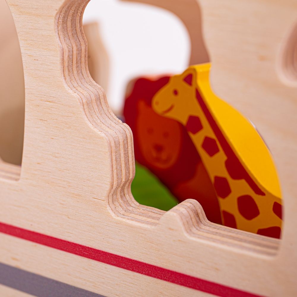 Tato pestrobarevná dřevěná zvířátka lze naložit na nákladní automobil pomocí speciálních otvorů na střeše a bočních panelech vozidla.  Roztřiďte tvary a naučte se vše o zvířatech, poté každé vložte do správného otvoru. Jakmile jsou všechna zvířata bezpečně na palubě, ujistěte se, že jsou zadní dveře zavřené, a projeďte nákladním autem k další zastávce.  Hlavní vlastnosti: 9 hracích prvkůpodporuje pohyblivost a obratnost vyrobeno z vysoce kvalitních, zodpovědně získaných materiálůsplňuje aktuální evropské bezpečnostní normy