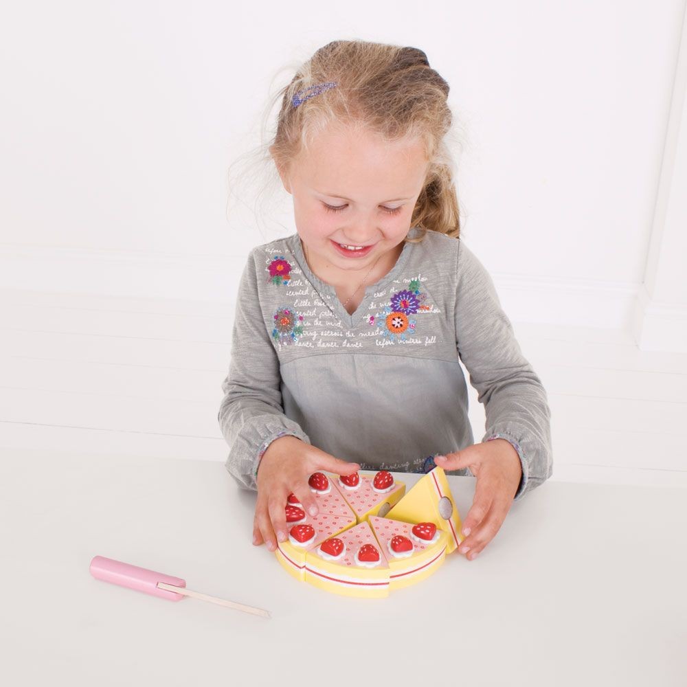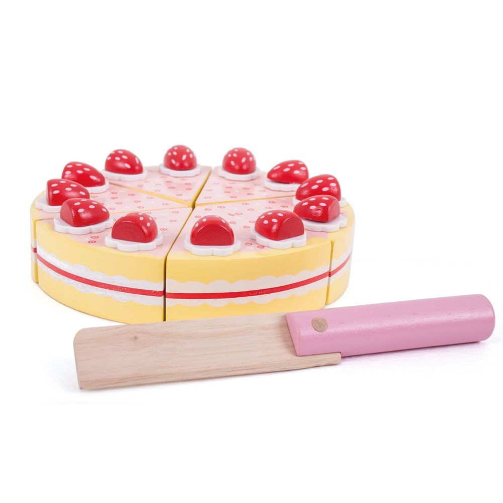 Bigjigs Toys Dřevěný krájecí dort s jahodami