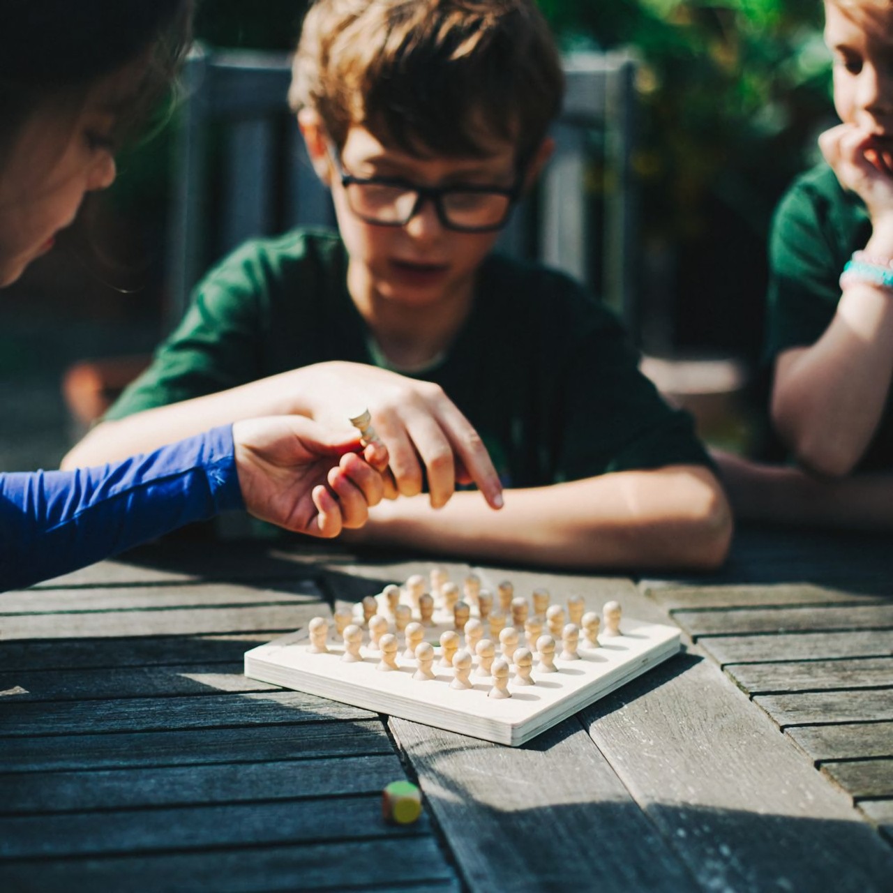 Jednoduchou hrou procvičujte soustředění, paměť a rozpoznávání barev. Vsuňte kartu s barvami některou z jejích čtyř stran do štěrbiny v herní desce a zakryjte všechna políčka figurkami. Pokoušejte se pak odejmutím některé z figurek odhalit stejnou barvu, která právě padla na kostce. Pokud Vám tip nevyjde, vraťte figurku zpět na její místo, nezapomeňte ale jakou barvu ukrývá! Vítězem se stává hráč, který díky paměti a úspěšným odhadům shromáždil nejvíce figurek. Hra je vyrobena z kvalitních a odpovědně získaných materiálů, zejména z odolné překližky a masivního dřeva. Hlavní vlastnosti:herní deska, 36 figurek a karta s barvamipro 2 hráčeatraktivní dřevěné zpracování
