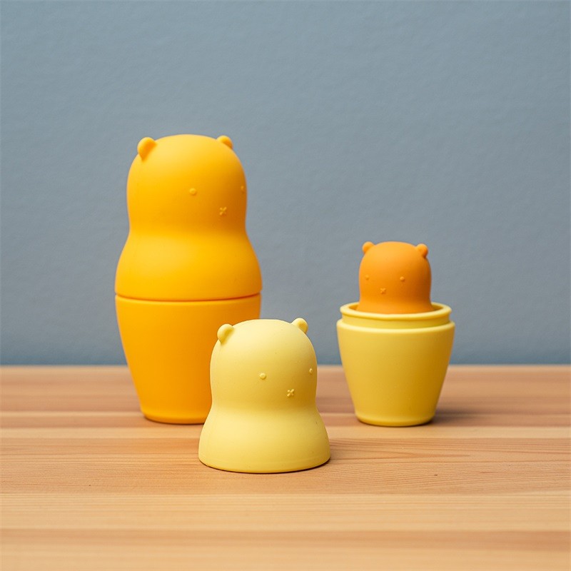 Naši silikonoví medvídci jsou super měkká a ohebná kousátka. Jsou zábavnou vývojovou hračkou a zároveň krásnou dekorací do dětského pokojíčku. Dodávají se ve třech odstínech ombré. Materiál je odolný, netoxický, snadno se čistí a je odolný vůči skvrnám. Vyrobeno ze 100% potravinářského silikonu bez otevřených pórů pro uchycení bakterií. Čistěte teplou vodou a jemným mýdlem. Jsou udržitelnou volbou pro rodiče, kteří hledají ekologické hračky. Hlavní vlastnosti: 3 silikonoví medvídci ve třech velikostechvyrobeno ze 100% potravinářského silikonu snadno se udržují v čistotěmožno mýt v myčcevhodné pro děti od 1 roku