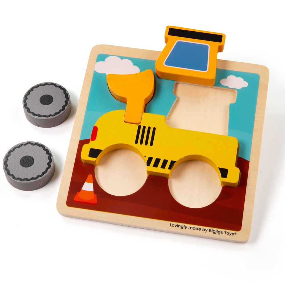 Ideální první dřevěné puzzle pro nejmenší. Robustní vkládací puzzle s velkými dílky, které vytvoří bagr. Skvělý způsob procvičení jemné motoriky, logického myšleníá a poznávání tvarů a barev. Toto dřevěné puzzle pro batolata je dodáváno s hladkou dřevěnou základní deskou s malovanou scénou. Batolata mohou také procvičovat počítání dílků skládačky od 1 do 5. Pomáhá také rozvíjet jemné motorické dovednosti a zručnost.Vyrobeno z vysoce kvalitních, zodpovědně získaných materiálů. Malováno netoxickými barvami a laky. Splňuje aktuální evropské bezpečnostní normy. Vhodné od 12 měsíců. Hlavní vlastnosti: 5dílné dřevěné puzzleIdeální velikost puzzle pro batolataRozvíjí jemnou motoriku a zručnostVyrobeno z vysoce kvalitních, zodpovědně získaných materiálů
