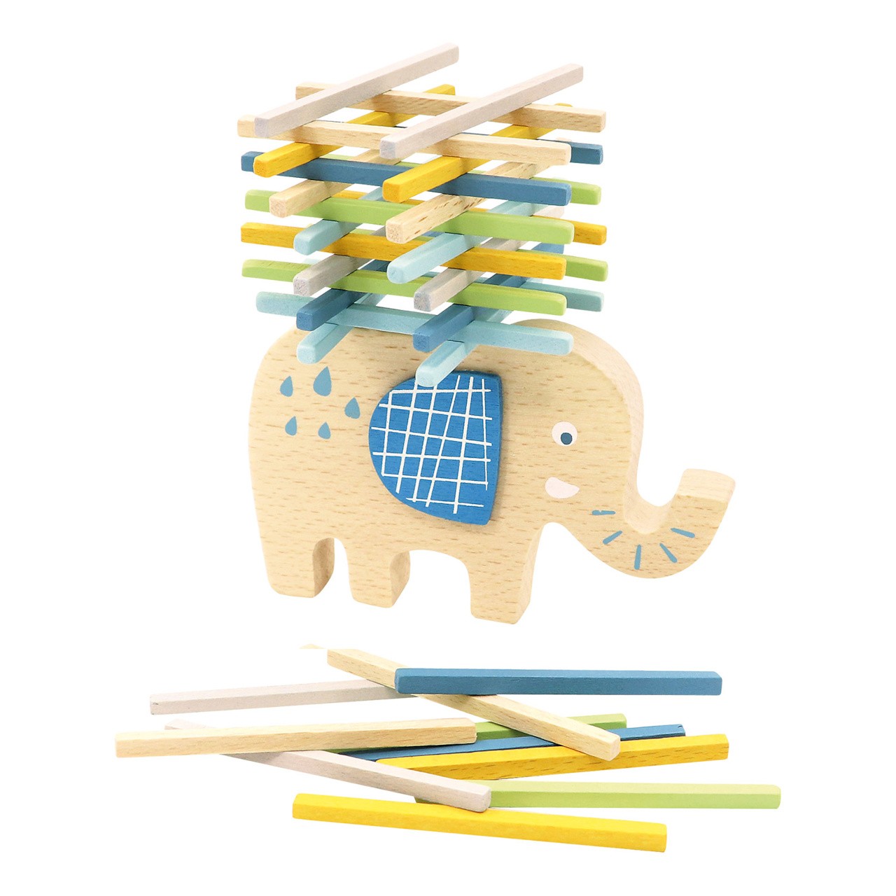 Slon je silné zvíře, unese na zádech takový náklad dřeva? Střídejte se s protihráči a ukládejte na figurku různobarevné tyčinky tak, abyste soupeřům příští tah co nejvíce ztížili, a oni nakonec náklad, nebo slona shodili. Zábavnou formou můžete při hře trénovat soustředění, jemnou motoriku a strategické myšlení. Vyrobeno z kombinace masivního dřeva a silné překližky, ošetřeno nezávadnými barvami.   Hlavní vlastnosti:pro 2–4 hráčefigurka slona a 36 hracích tyčinekrobustní a odolné dřevěné provedení