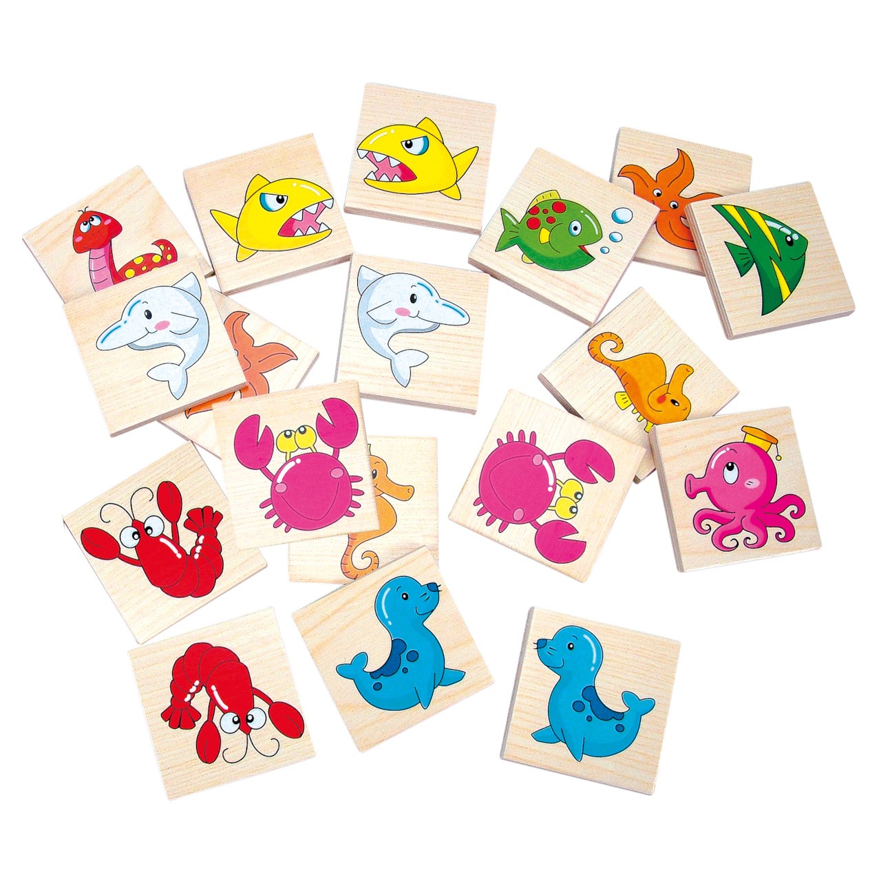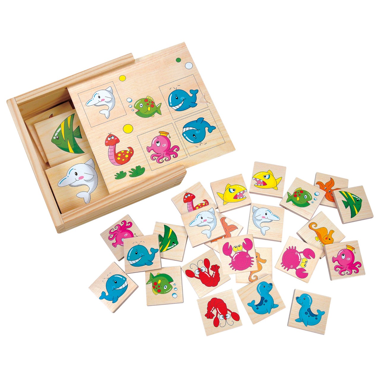Díky pestrobarevným obrázkům roztomilých vodních zvířátek se hraje téměř samo. Pexeso je baleno v praktické krabičce s výsuvným víkem – vše vyrobeno z lehké, ale pevné překližky. Hlavní vlastnosti:krabička s víkem a 24 herních dílkůpraktické balení