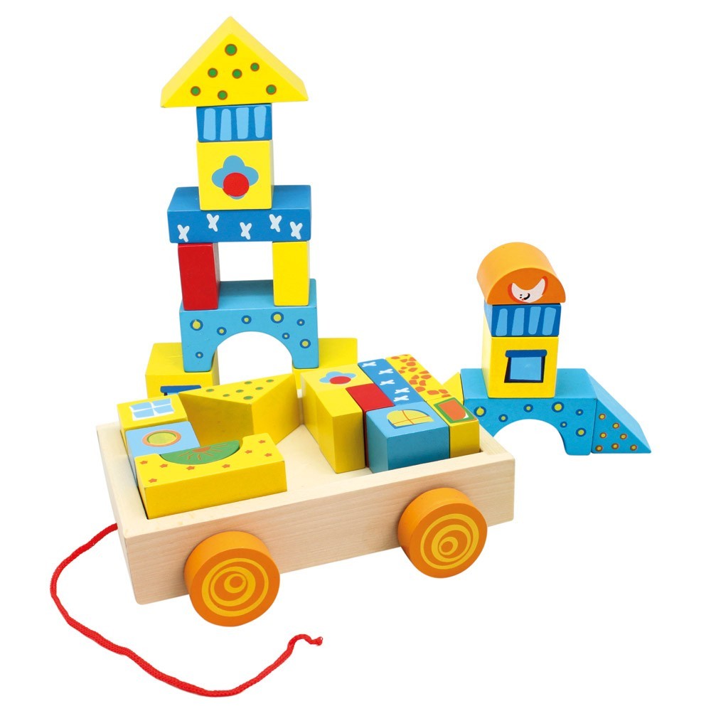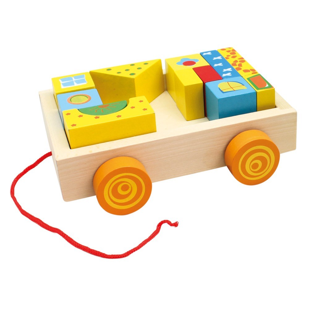 Dřevěný vozík v přírodním provedení s pestrobarevnými kolečky a kostičkami je základním vybavením všech malých stavitelů. Skvělé pro tvořivost a motoriku. Hračka je robustní, vyrobena z masivního dřeva. Hlavní vlastnosti:vozík a 18 kostekrobustní dřevěné provedení