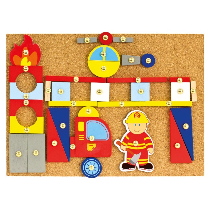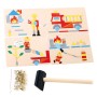Oblíbená hra s kladívkem skvěle podporuje tvořivost a představivost dětí. Z rozmanitých různobarevných dílků lze vytvořit mnoho motivů a s pomocí hřebíčků a kladívka je připevnit do korkové podložky a opětovně rozebrat. Rozvíjí jemnou motoriku, trpělivost i koordinaci očí a rukou dítěte.   Hlavní vlastnosti:podložka, kladívko, 78 dřevěných a 8 papírových dílků, 80 hřebíčků