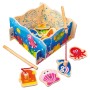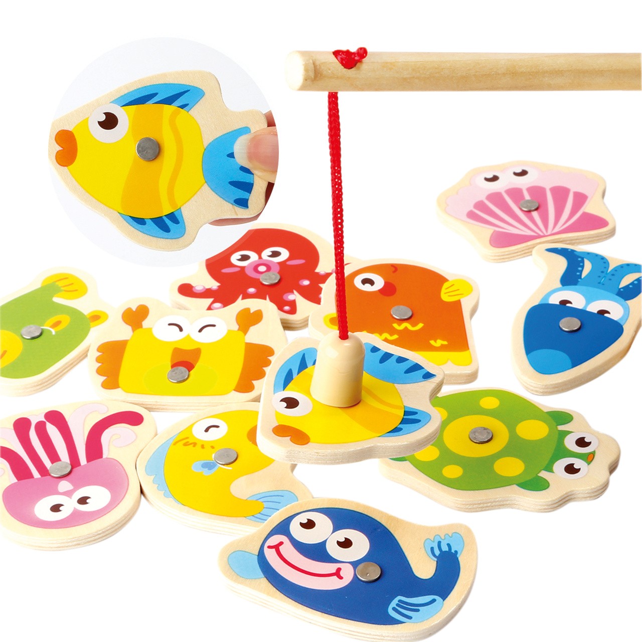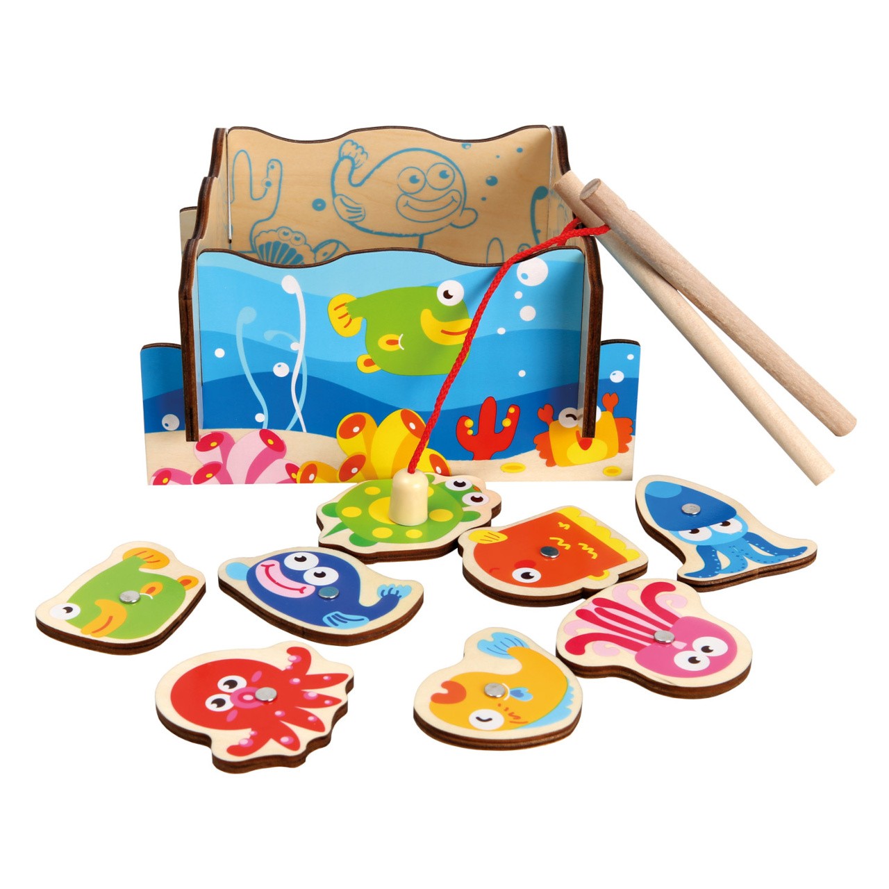 Zábavné rybaření v atraktivních barvách, s mnoha roztomilými obyvateli moří. V krásně dekorované čtyřstěnné kulise se pokuste ulovit magnetickou udičkou oblíbeného živočicha. Hru lze hrát jednotlivě i ve dvojici. Hračka je vyrobena z lehké, ale pevné překližky a masivního dřeva.   Hlavní vlastnosti:4 díly kulis, 2 udičky a 11 herních dílkůodolné dřevěné provedení