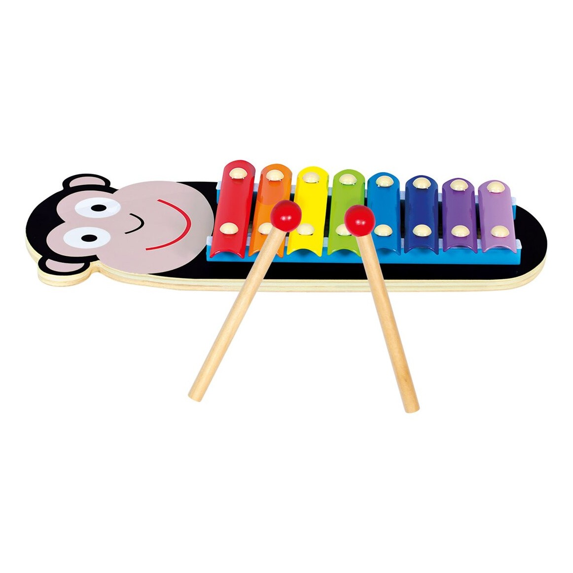 Dětský xylofon s motivem opičky. 3-dílná sada s 8 kovovými zvukovými pláty, které nabízejí hraní v plném rozsahu. Xylofon nabízí dětem příležitost seznámit se se základy hudby a rozvíjet svůj hudební talent. Je tak ideální hračkou pro první dětské hudební kroky. Ošetření nezávadnou barvou, zaoblené rohy a hladké povrchy zajišťují bezstarostné hudební chvilky. Vhodné pro děti od 18 měsíců. Varování! U dětí do 18 měsíců používat pouze pod dohledem dospělé osoby. Hlavní vlastnosti: 3 dílná sada8 zvukůrozvíjí hudební talent