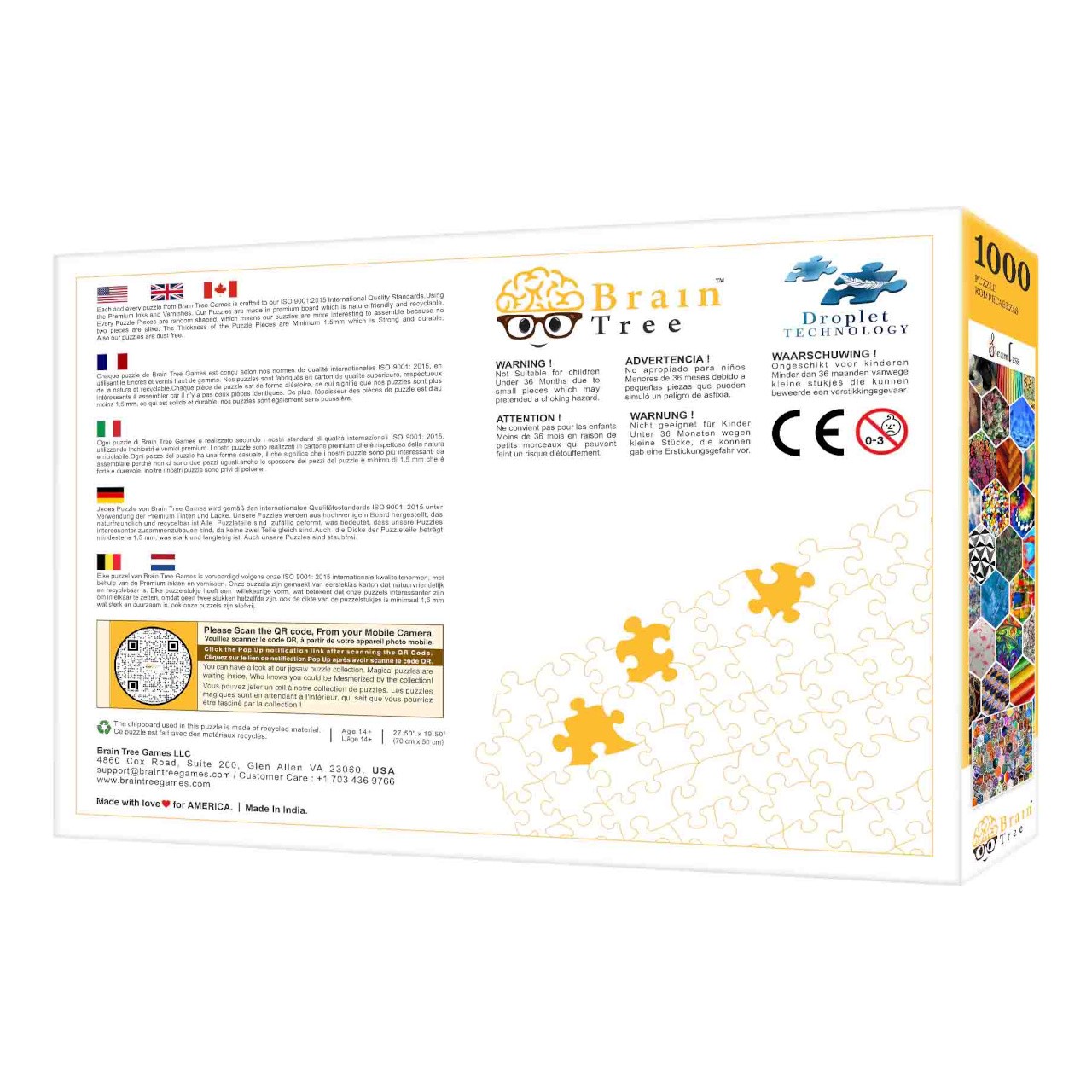 Video je pouze ilustrační, zobrazuje příbuzný produkt.   Puzzle Brain Tree Vás ihned zaujmou prvotřídním potiskem a zpracováním povrchu. Matná úprava je zárukou, že i ty nejmenší multireliéfní detaily obrázku budou za měnících se světelných podmínek dokonale viditelné. Dílky jsou nejen příjemné na dotek, ale nabízí také vysokou otěruvzdornost, sestavování si proto budete moci užívat stále znovu a znovu. Oproti běžným skládačkám, jejichž dílky jsou vyřezány do vzoru mřížky a mají všechny přibližně stejný tvar, jsou dílky puzzle Brain Tree řezány náhodněji. Nabízejí tak širokou paletu rozmanitých, mnohdy překvapivých tvarů, které do skládání vnáší nevšední, dobrodružný rozměr a zábavu. Každý dílek je unikátní! V každém balení naleznete plakát s odpovídajícím obrázkem vytištěným ve stejné kvalitě jako samotné puzzle. Součástí je také několik praktických skládacích kartónových přihrádek, které můžete využít při třídění dílků. Užitečným doplňkem dodávaným spolu se skládačkami je papírový stojan, do kterého můžete usadit víko krabice, abyste mohli při stavbě pohodlně nahlížet na vzorový obrázek. V sadách o 1000 dílcích navíc dostanete i velký a odolný uzavíratelný sáček, který dílky puzzle spolehlivě ochrání před poškozením a ztrátou.   Hlavní vlastnosti:1000 precizně vyřezaných dílků náhodných tvarůvysoce kvalitní potisk, odolná povrchová úpravaplakát formátu 52×30 cm s odpovídajícím obrázkemkartonové přihrádky pro přehledné tříděnístojan na víko krabice pro větší pohodlí při skládáníodolný uzavíratelný sáček chránící dílky před poškozením a ztrátou